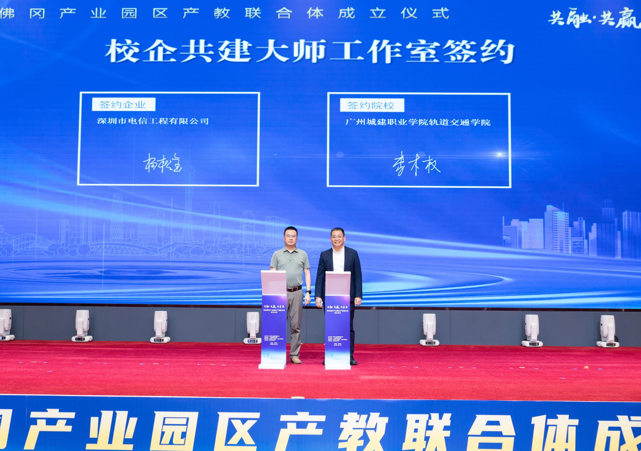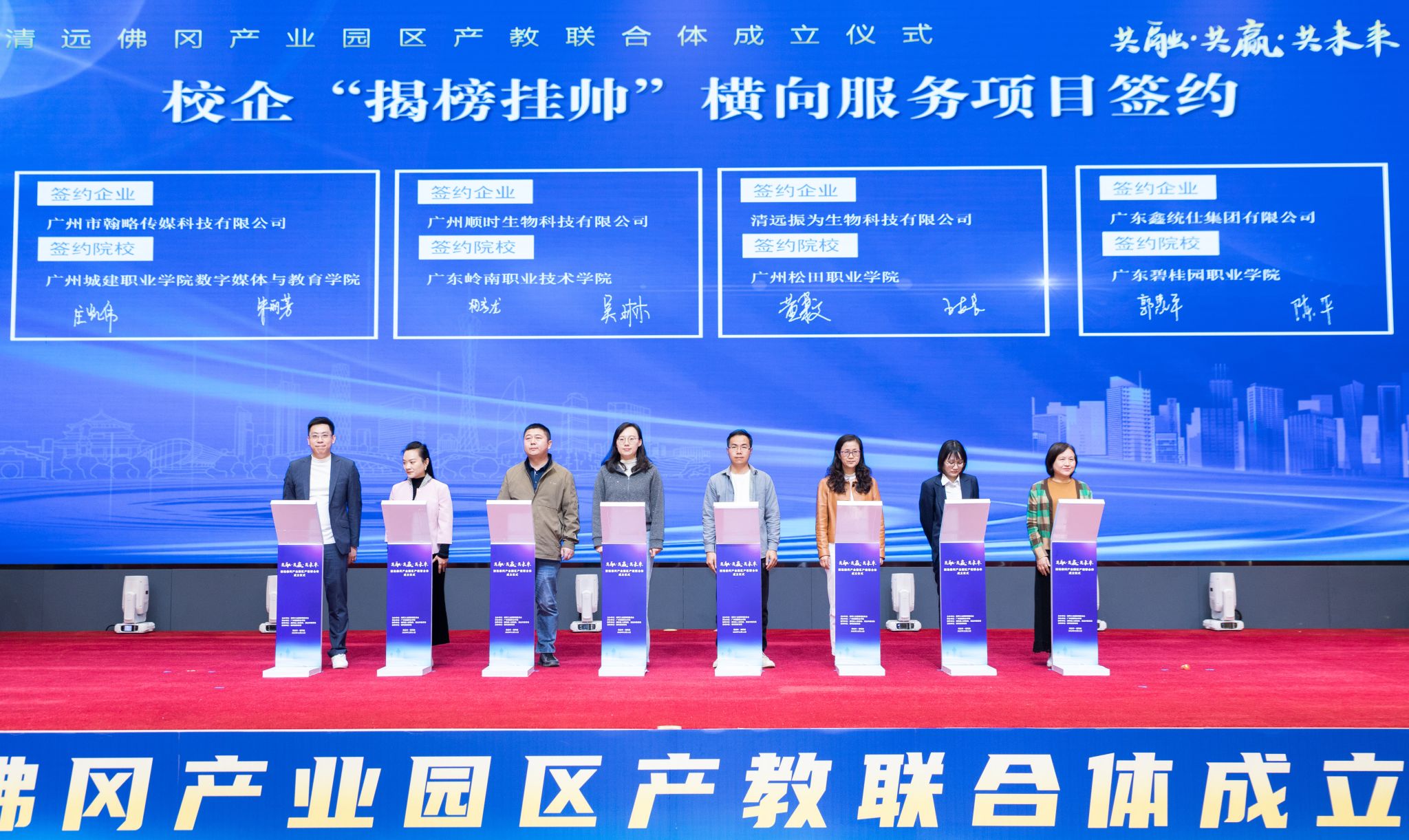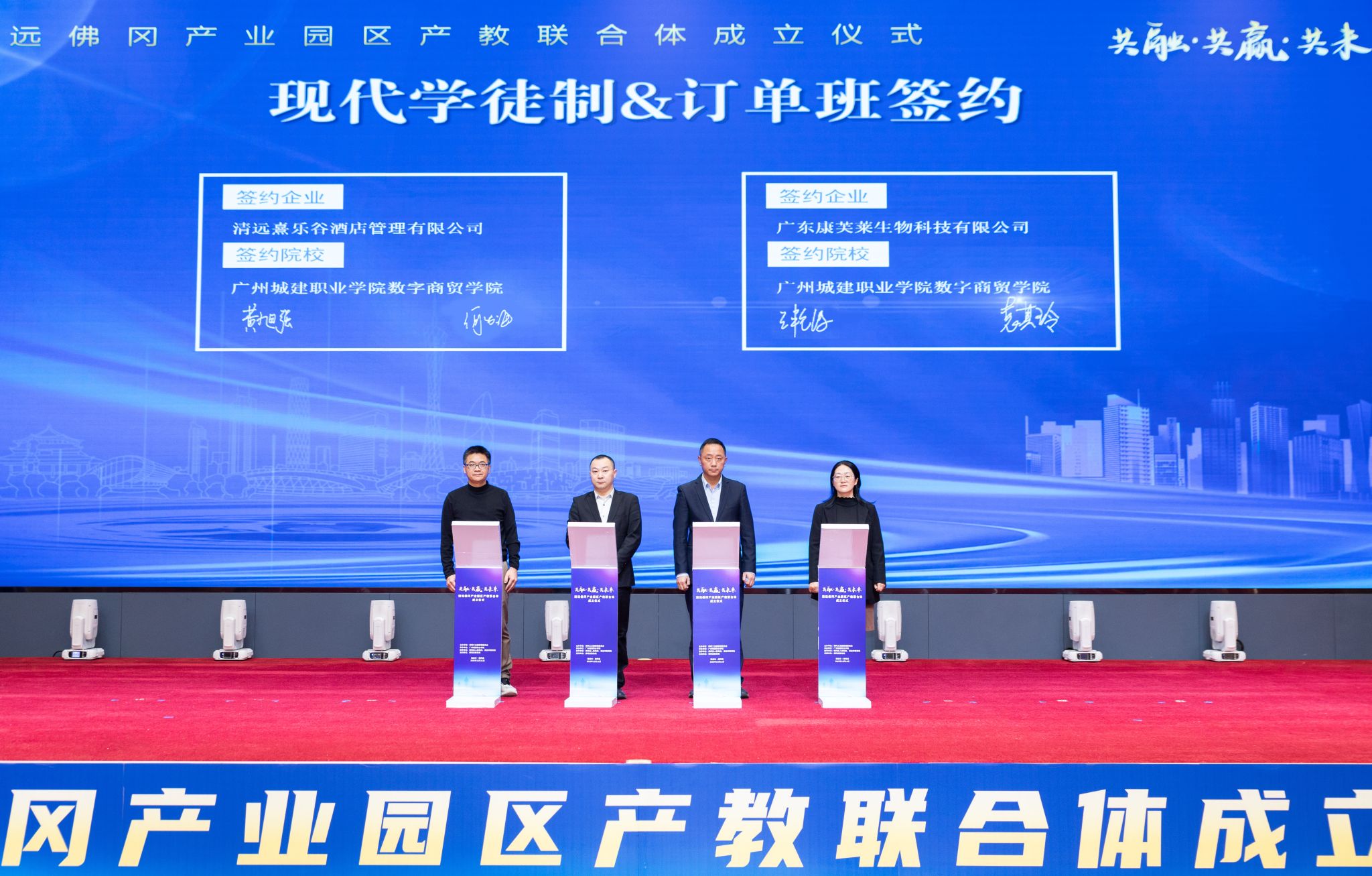 在产教融合实践教学基地签约环节,佳都科技集团、广东领益智造、红苹果家具等20余家园区主导产业企业,分别与广州城建职业学院轨道交通学院、机电工程学院等二级学院分组签约,将围绕实践教学、技能培训等方面开展深度合作;“校中厂”基地签约中,深圳市瑞颜生物科技等企业与高校携手,打造沉浸式实践教学场景;中高企一体化育人项目、清远熹乐谷酒店管理有限公司“订单班” 签约,将实现中职、高职与企业的人才培养无缝衔接,精准匹配企业岗位需求。