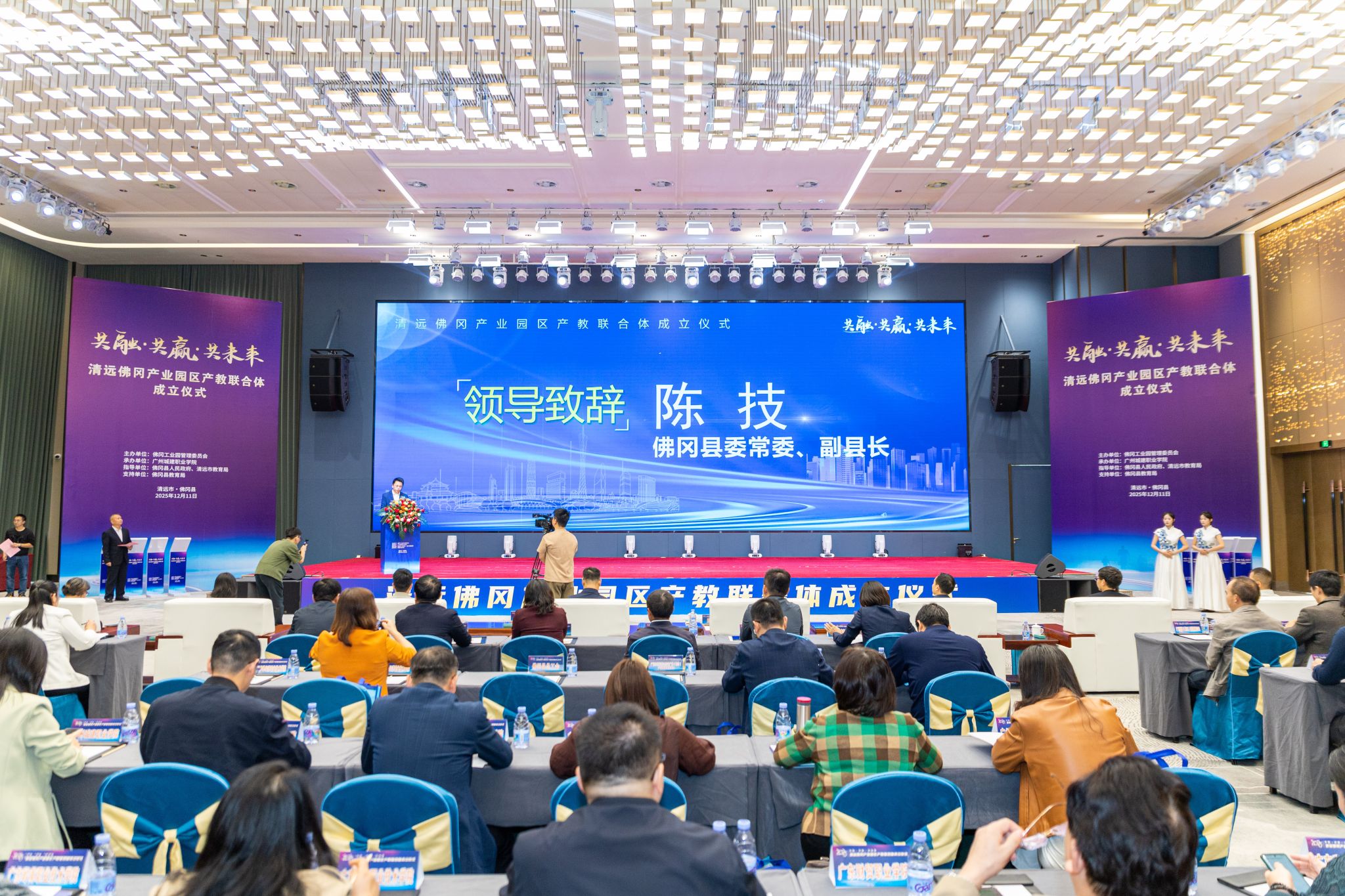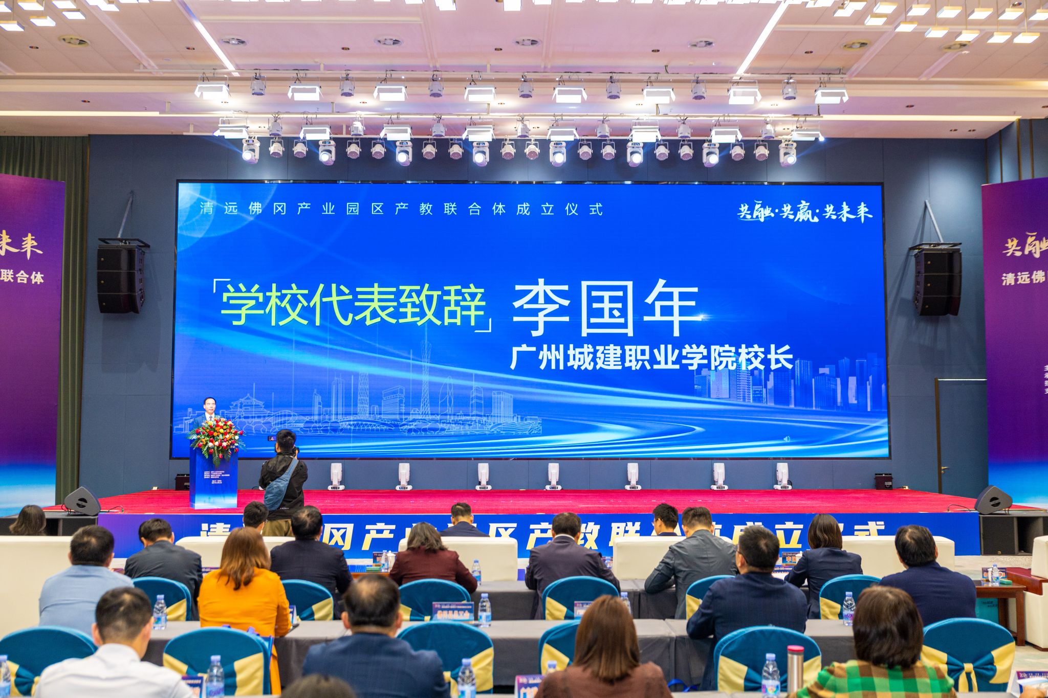12月11日,清远佛冈产业园区产教联合体成立大会在清远佛冈召开。佛冈县委常委、副县长陈技,清远市委教育工委委员、市教育局党组成员、主任督学叶灿强,广州城建职业学院校长李国年、副校长杨清国、校长助理邱漠河,以及清远市内及周边十余所院校、80余家企业近300人出席大会,共同见证这一重要时刻。大会由广州城建职业学院副校长张德宜主持。