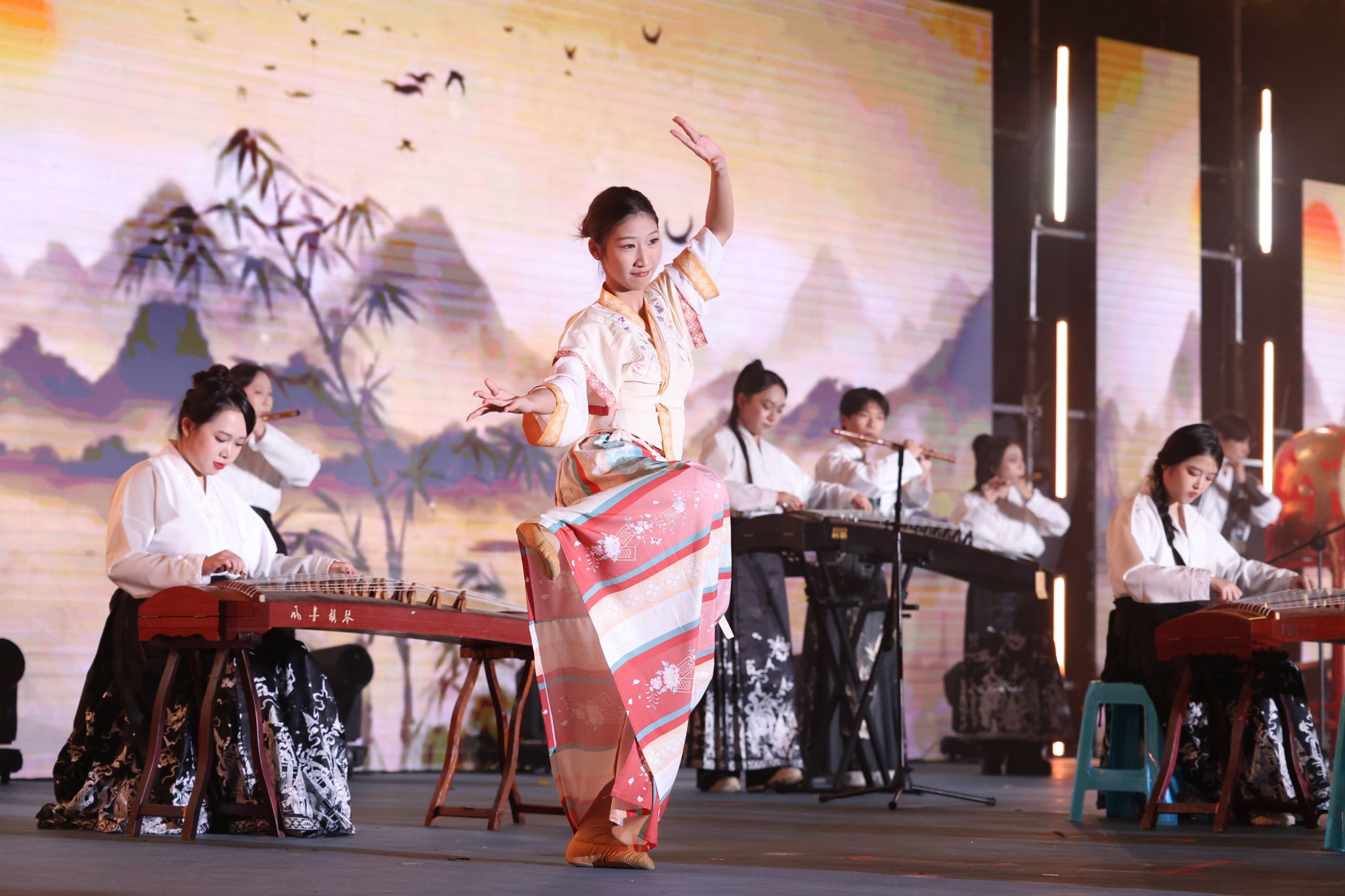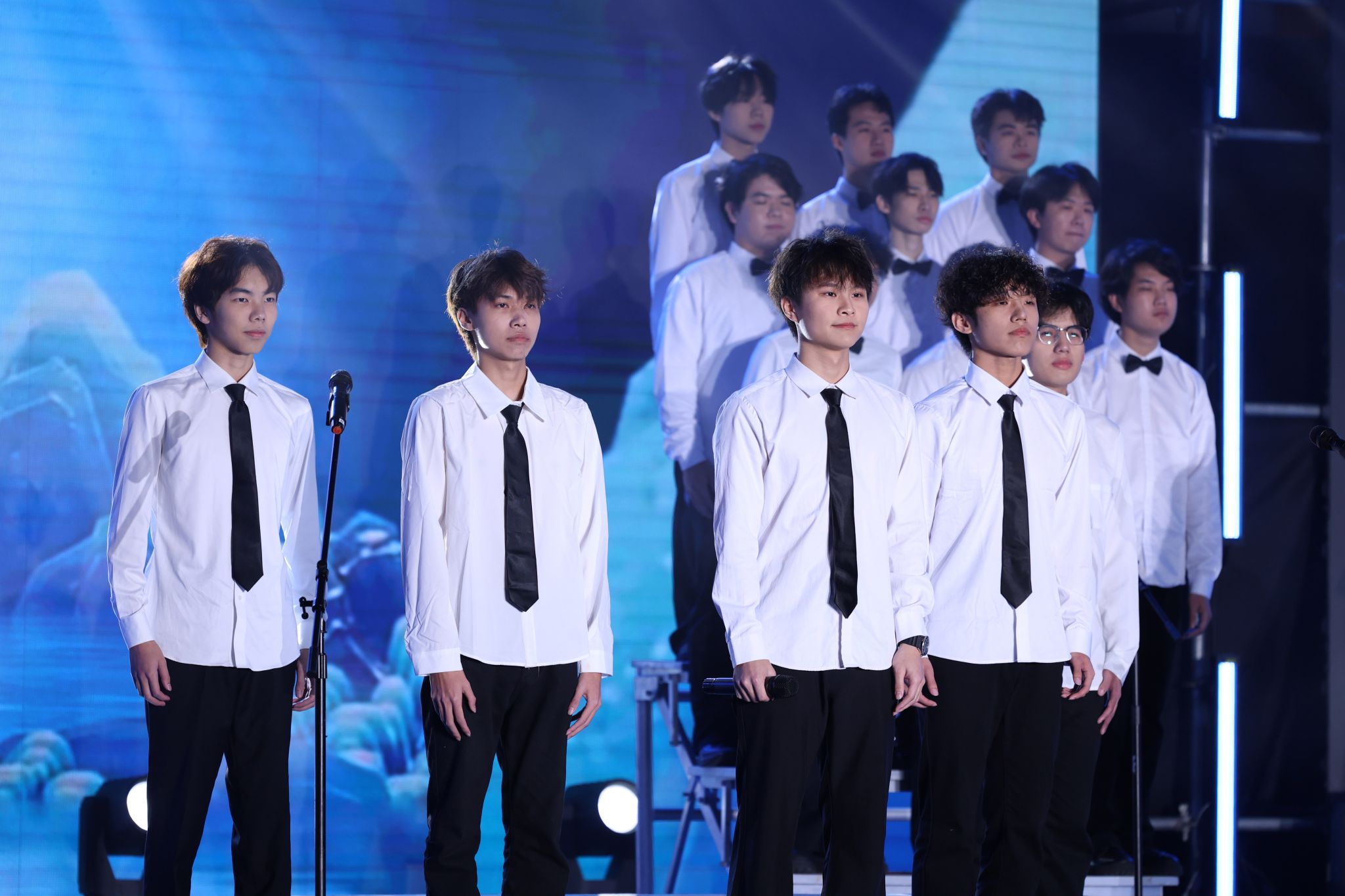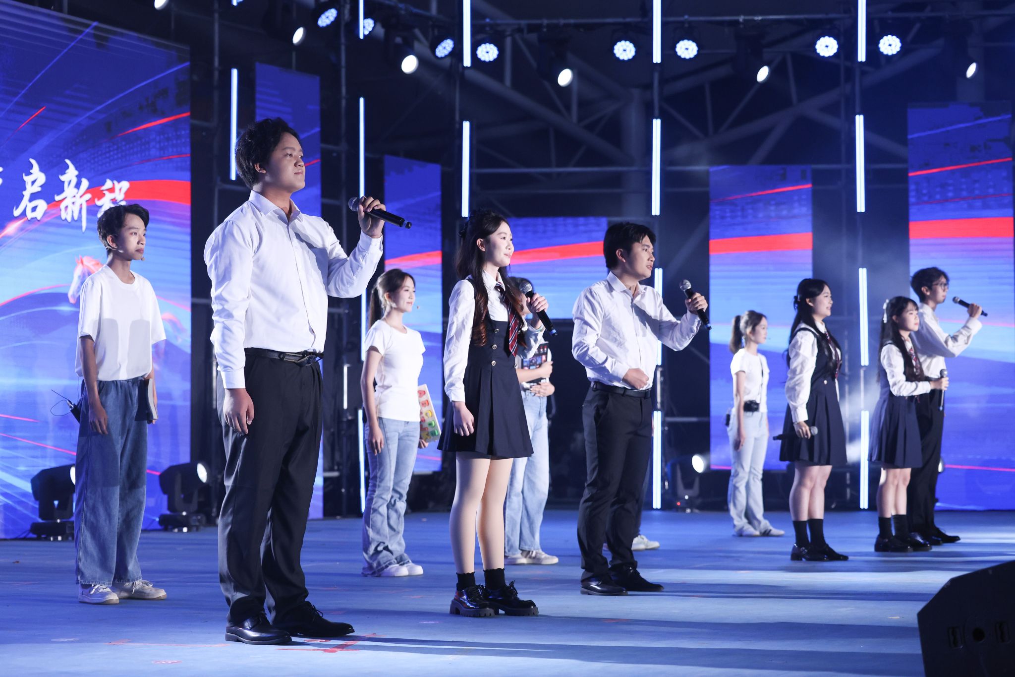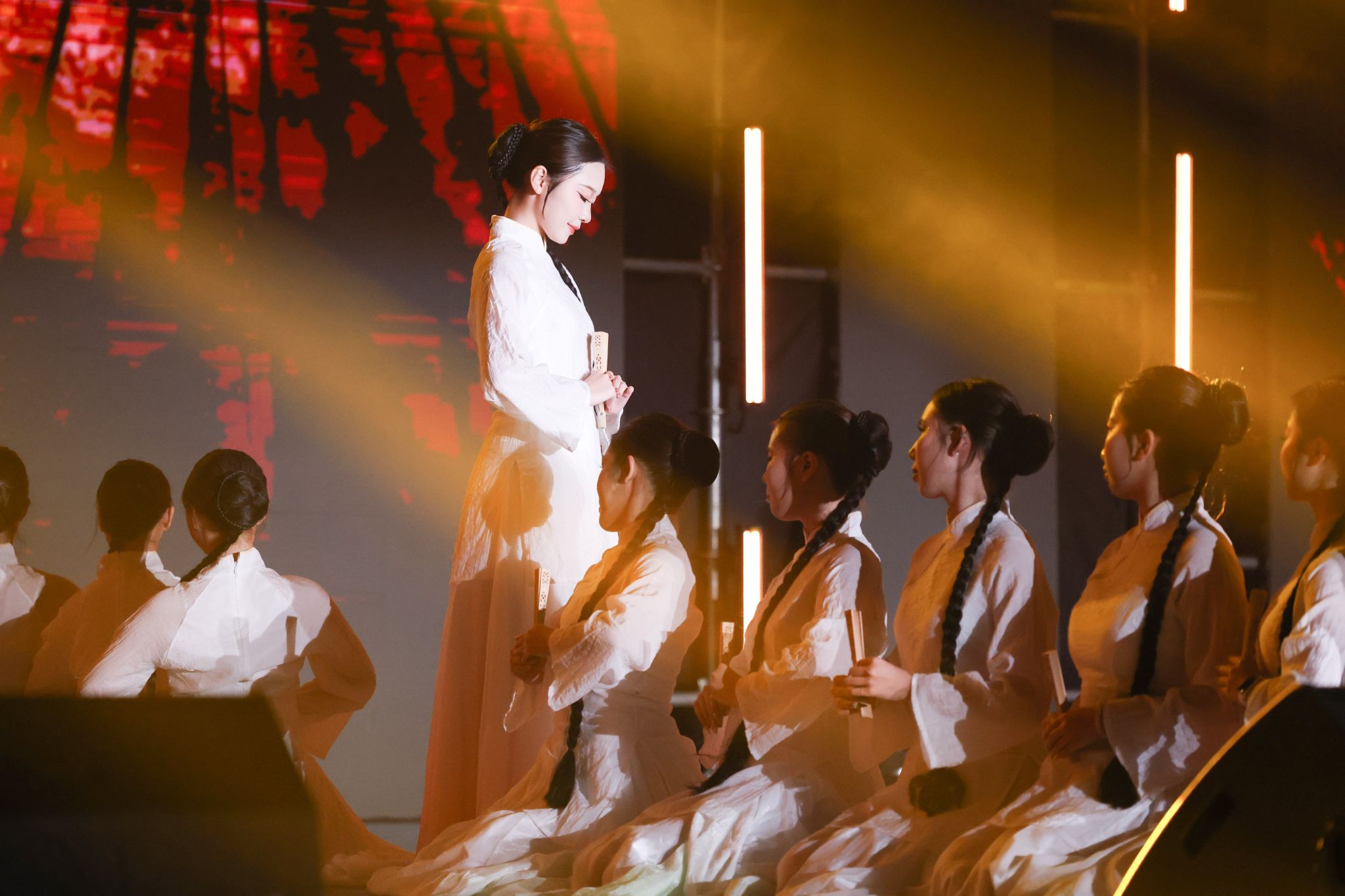 从激情澎湃的朗诵《青春正当燃》,到深情演绎的《身骑白马》;从动感十足的街舞《Cyborg Dance》,到校园十大歌手联袂献唱的《与你共赴明天》,第一篇章以多元形式诠释了青春的活力与梦想的厚度。第二篇章中,小品《此刻》以幽默温情聚焦校园生活;古典舞《香扇藏春》尽展东方韵味;民乐合奏《双面燕洵》琴瑟和鸣、舞影翩跹;歌曲《天空没有极限》唱出了学子勇往直前的心声。第三篇章在充满力量的《心手相连》中开启,情景大合唱《山河回响,沂蒙情》深情动人,走秀《元启新程,马踏霓裳》华美大气;最后,晚会在歌舞《心声》中圆满落下帷幕。