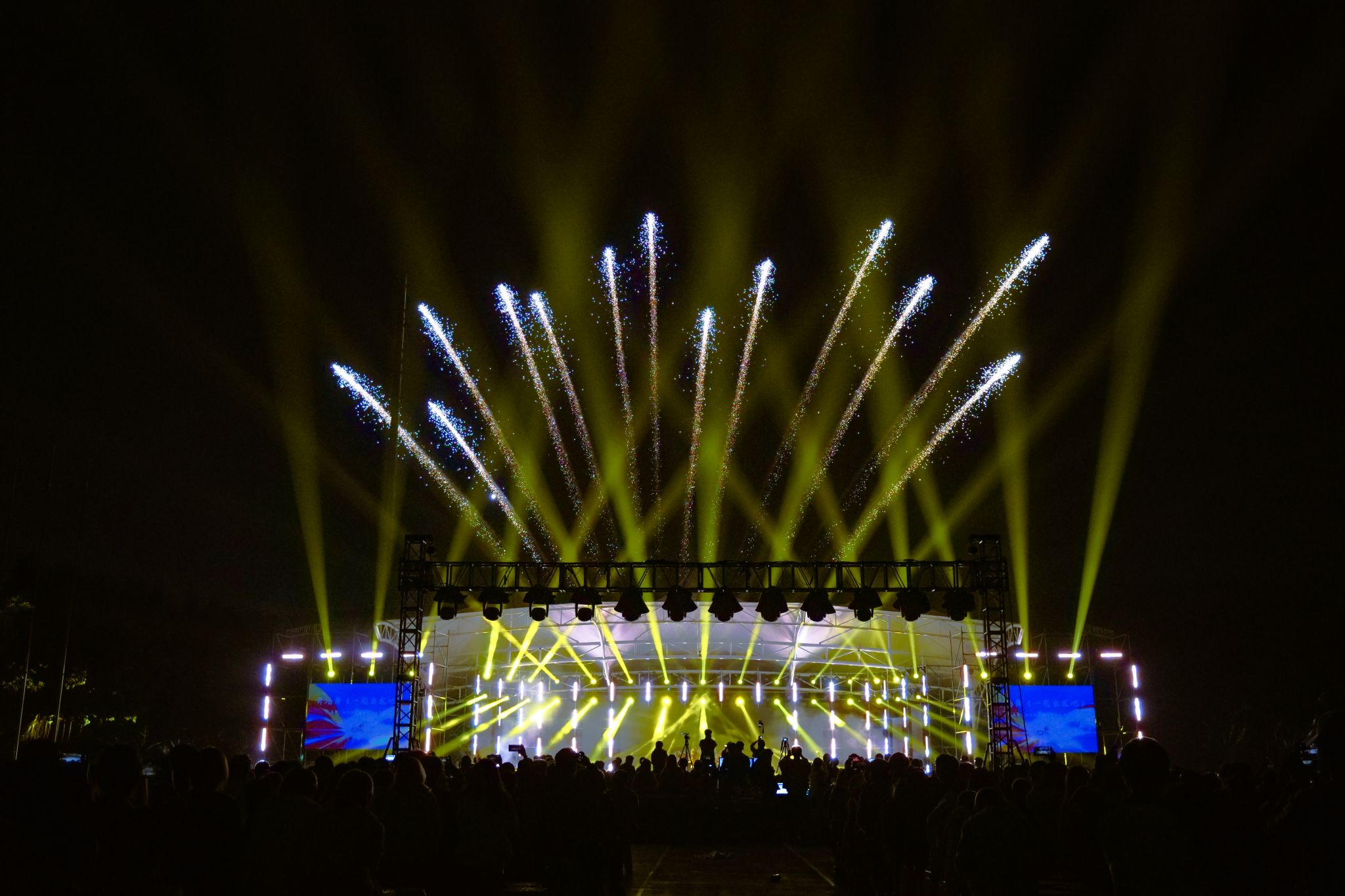 文艺晚会在璀璨的灯光秀中拉开序幕,流动的光束与激昂的节奏交相辉映,瞬间点燃全场氛围。