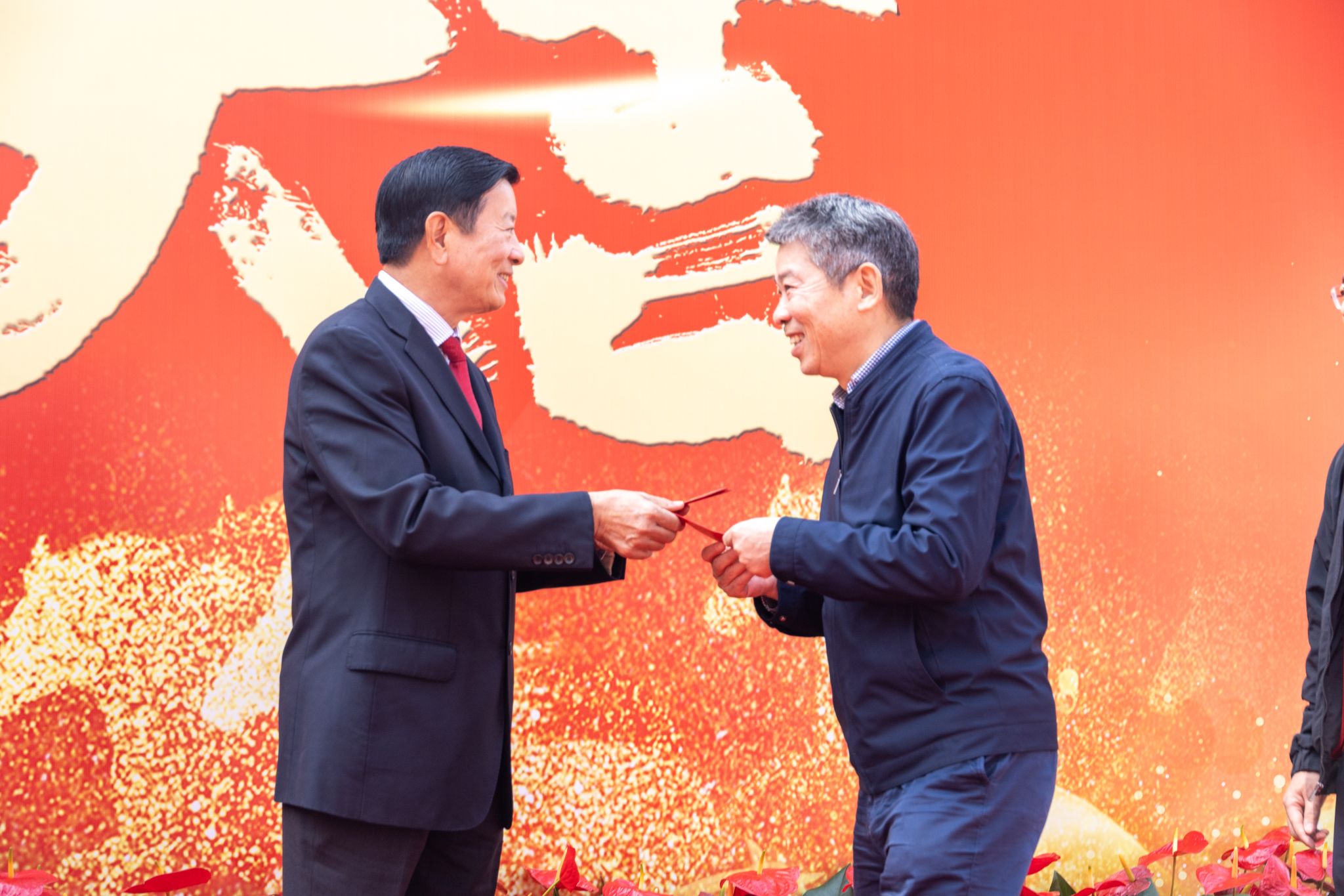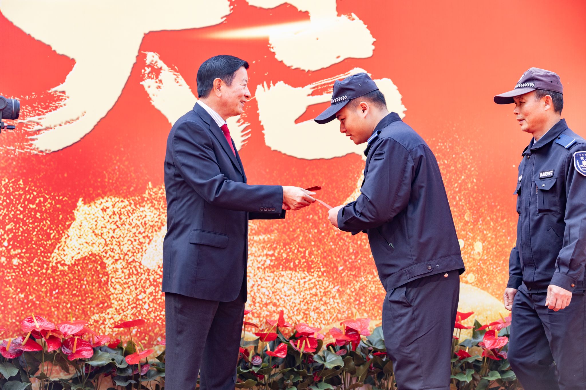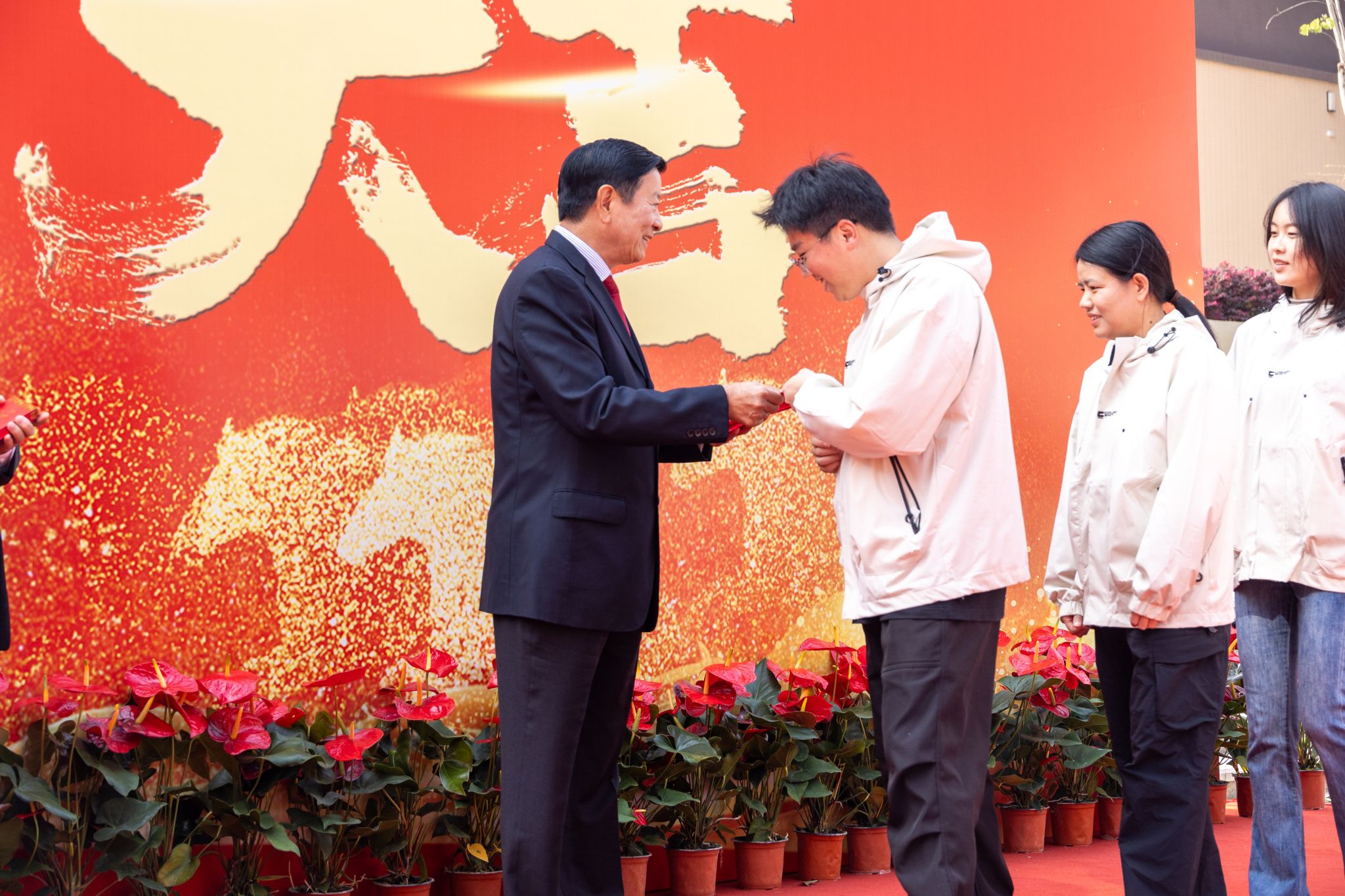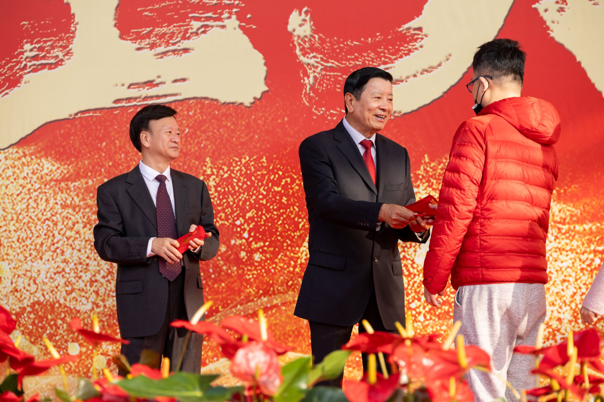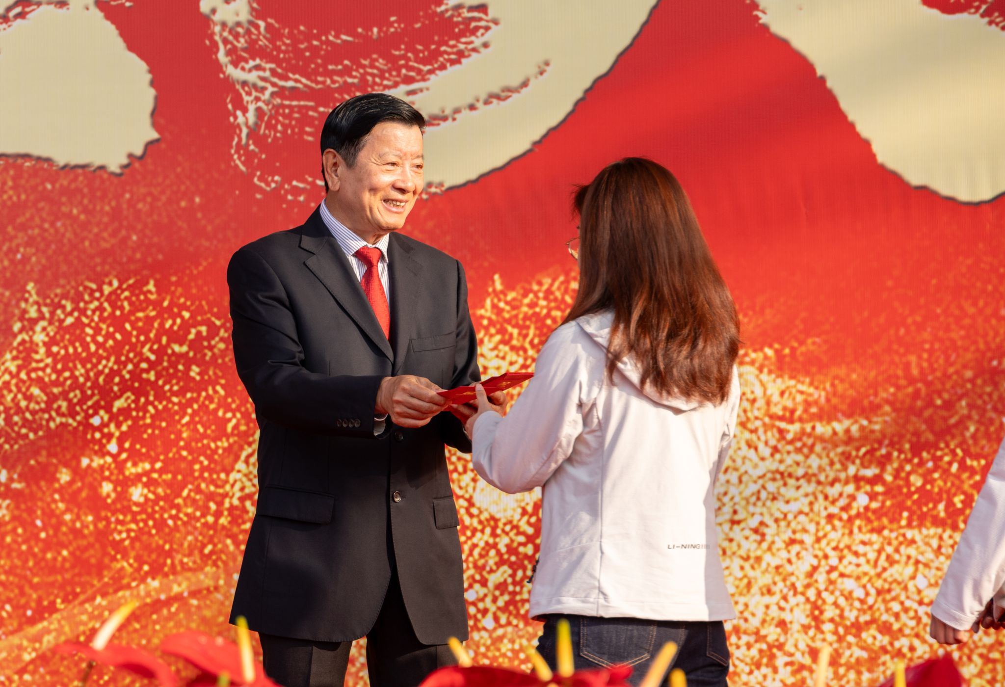 “新年好!”“开工大吉!”“新的一年顺顺利利!”——伴随着一声声真挚的祝福,刘维嘉董事长将红包一一递到教职工手中。每递出一个红包,他都亲切地点头致意,目光中满是关切与期许。