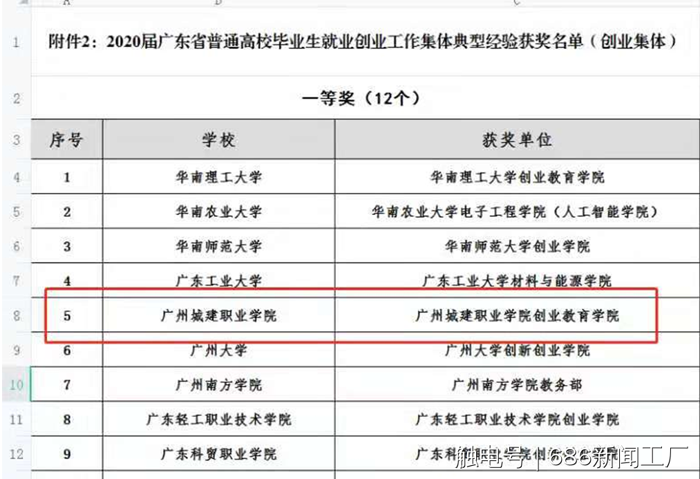 4月12日,2020届广东省普通高校毕业生就业创业工作典型经验集体和个人的公示期满,就业创业指导中心荣获就业集体一等奖,创业教育学院荣获创业集体一等奖,尤其值得一提的是,在12个创业集体一等奖名单中,该校名列华南理工大学、华南农业大学、华南师范大学、广东工业大学之后,名列第五。此外,还有4人荣获就业先进个人和创业先进个人。