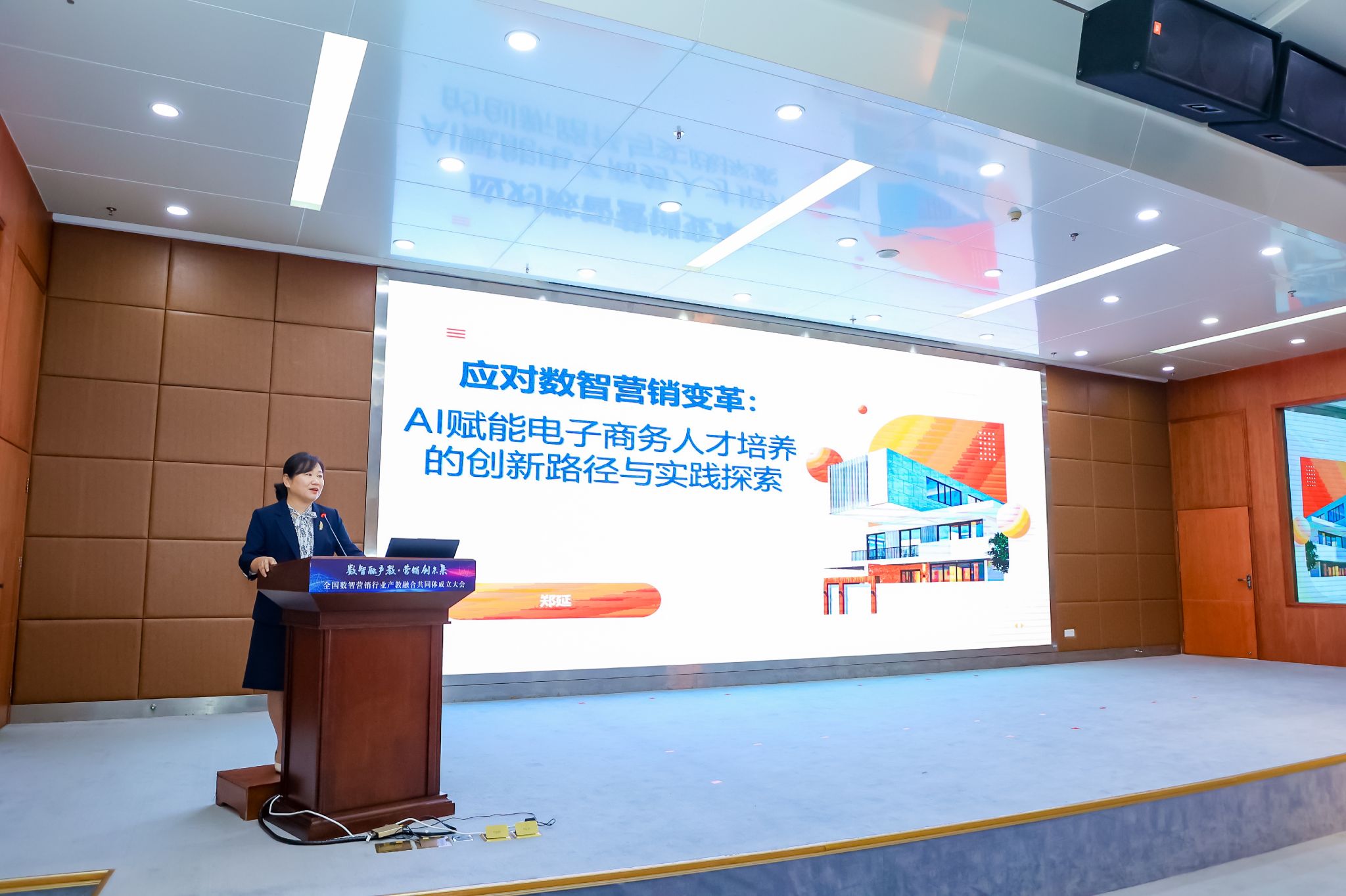 在主旨报告环节,全国电子商务职业教育教学指导委员会郑延教授以《应对数智营销变革:AI赋能电子商务人才培养的创新路径与实践探索》为题,深入解读了AI技术对电子商务人才培养体系的重塑价值,提出了“政策-资源-实施”三维保障体系,为共同体构建适配行业需求的人才培育标准指明了方向。