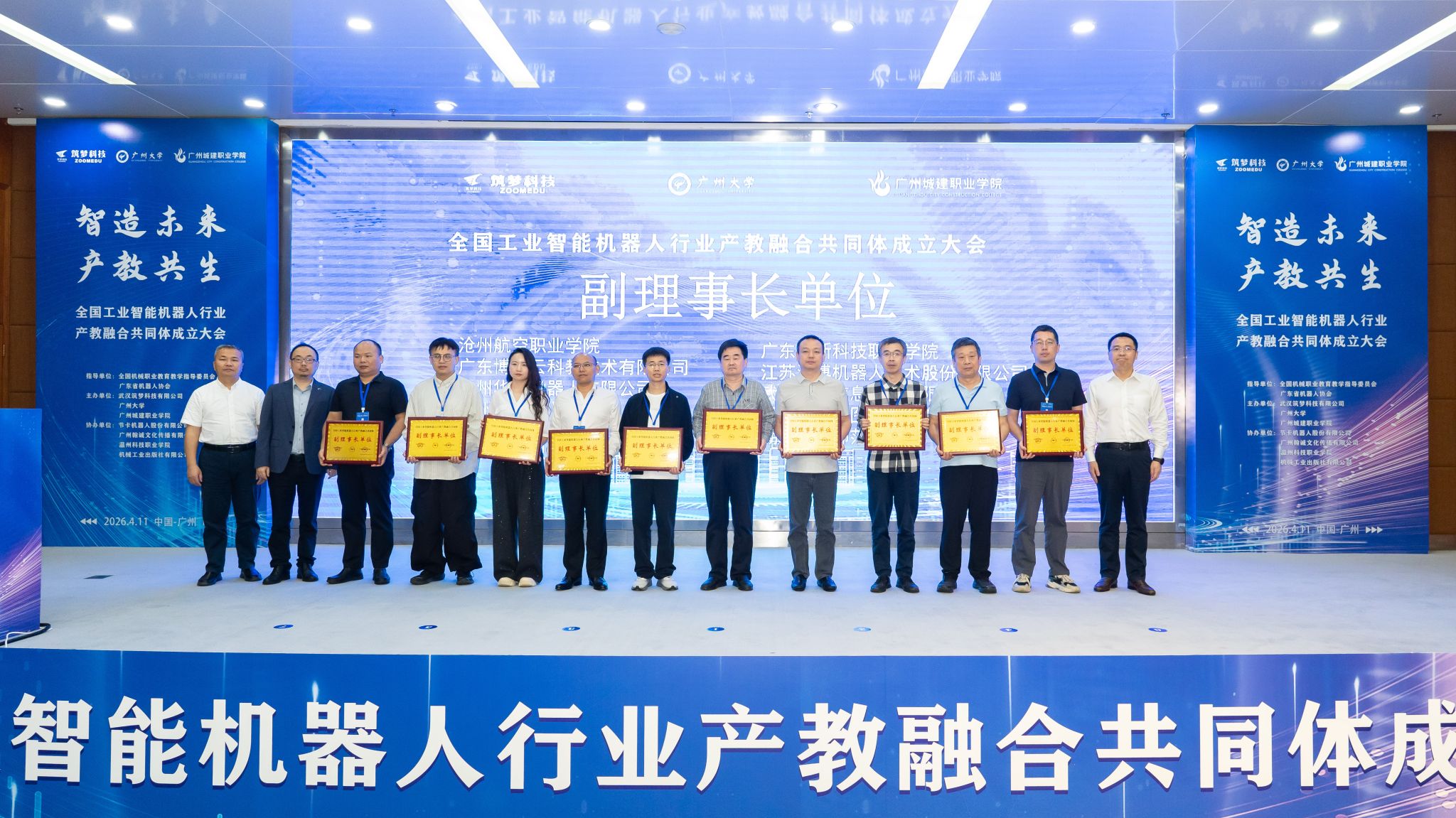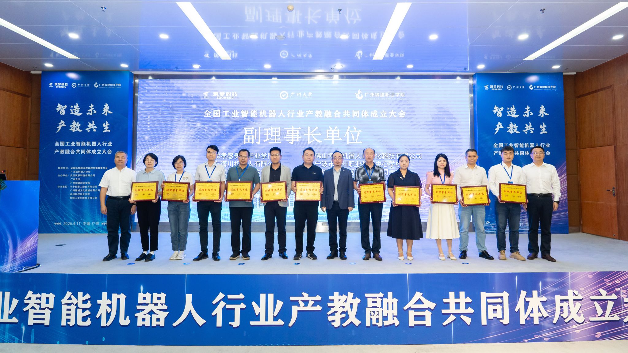 4月11日上午,阳光明媚,春意盎然。全国工业智能机器人行业产教融合共同体成立大会在我校广州校区会议中心第一报告厅举行。本次会议由全国机械职业教育教学指导委员会、广东省机器人协会指导,由武汉筑梦科技有限公司、广州大学、广州城建职业学院联合发起,汇聚政府、行业、企业、学校、科研机构等各方力量。400余位嘉宾、代表共聚一堂,共探产教融合协同育人新模式,旨在推动教育链、人才链与产业链、创新链的有机衔接。