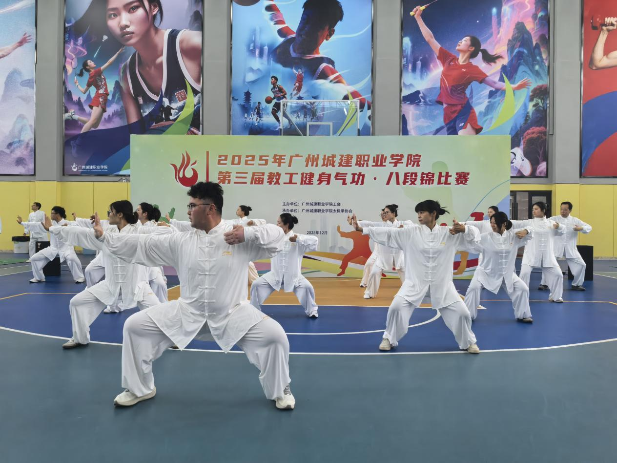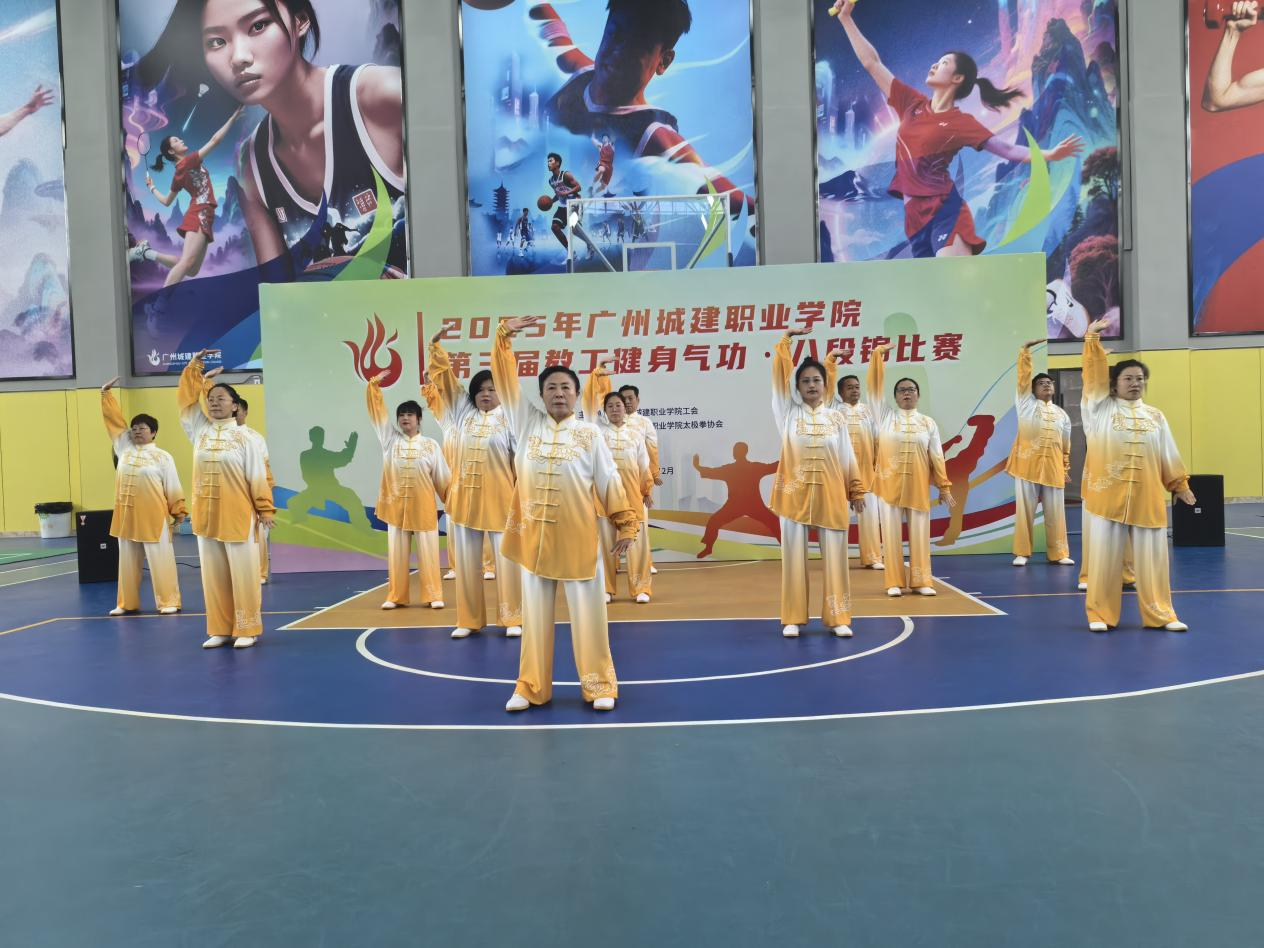 12月25日下午,由校工会主办,校太极拳协会承办的第三届教职工健身气功——八段锦比赛在学校广州校区体育馆举行,来自全校14个工会小组的289名教职工组成代表队参赛。学校副校长、工会主席杨清国,学校党委组织部部长、工会副主席吴辉军等出席比赛。