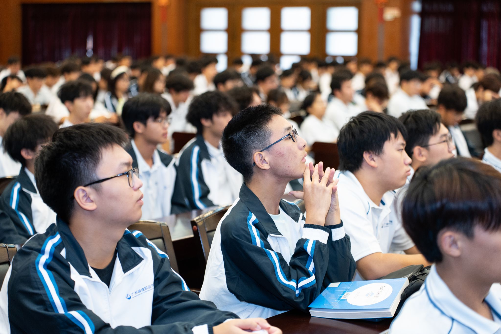 面对百年未有之大变局,李国年引导学生深入思考个人发展与国家命运的内在联系。他例举了学校涌现出的多位优秀学子典范,如入职华为的优秀毕业生戴玮颖、世界青年屋面工冠军赛季军黄佳鑫、全国职业规划大赛金奖获得者李基婷、世界职业院校学生专业技能大赛争夺赛金奖团队等,勉励学子将抗战精神转化为奋进动力,珍惜职业教育发展机遇,练就过硬本领,为民族复兴贡献青春力量。