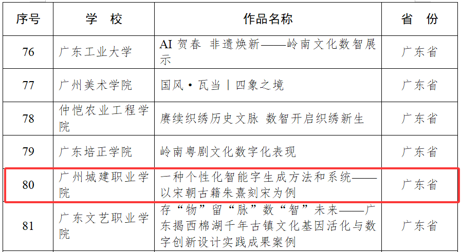 近日,教育部办公厅公布2025年高校“ 礼敬中华优秀传统文化 ” 宣传教育活动结果,我校艺术与设计学院副院长李佛君教授的作品《一种个性化智能字生成方法和系统——以宋朝古籍朱熹刻宋为例》入选“数智未来”焕活传统文化案例,实现我校该类项目上“零”的突破。