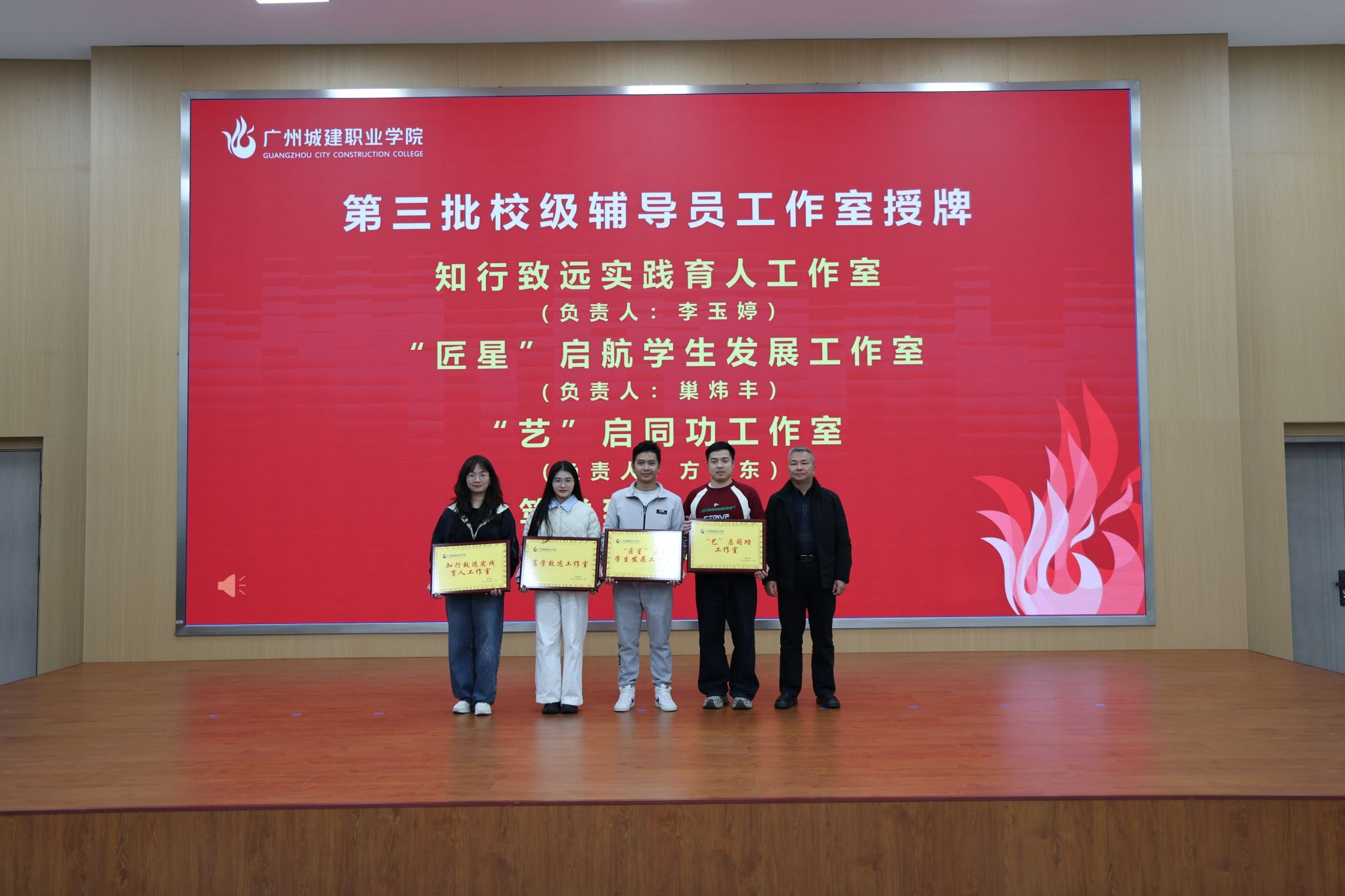 张双宣读《广州城建职业学院关于表彰2025年度学生管理质量先进单位和个人的决定》。大会对2025年度获得先进个人、参加比赛获奖人员、第三批校级辅导员工作室进行表彰和授牌,与会领导为获奖人员颁奖。