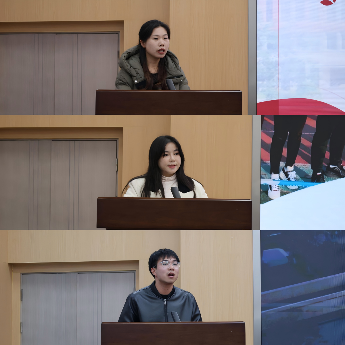 医药卫生学院副院长郑卓琳作学院学风建设工作经验分享;经济与管理学院辅导员钟连品、数字商贸学院辅导员向家豪分别作班级管理经验分享。2025年新入职辅导员依次作了自我介绍并分享入职感受。