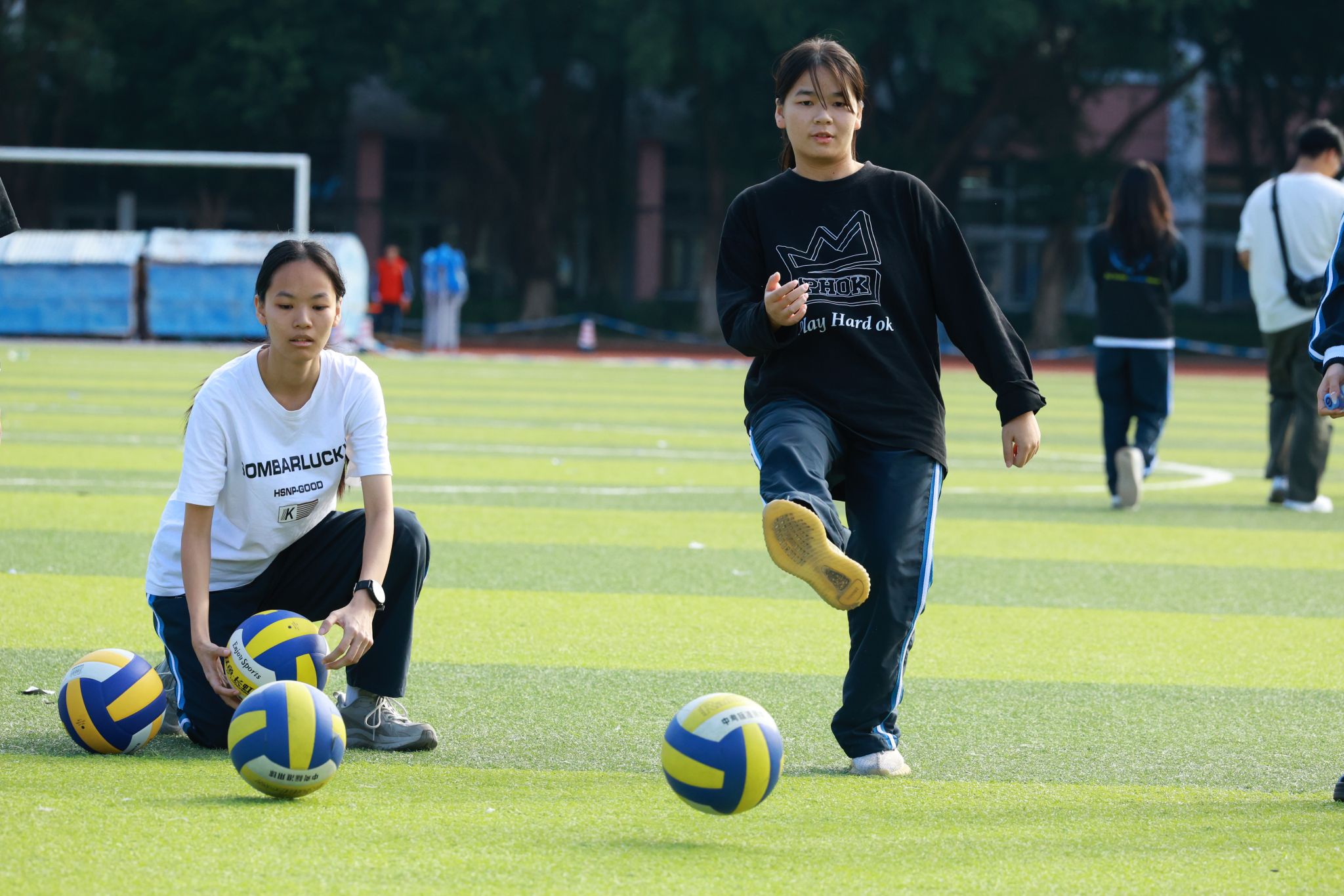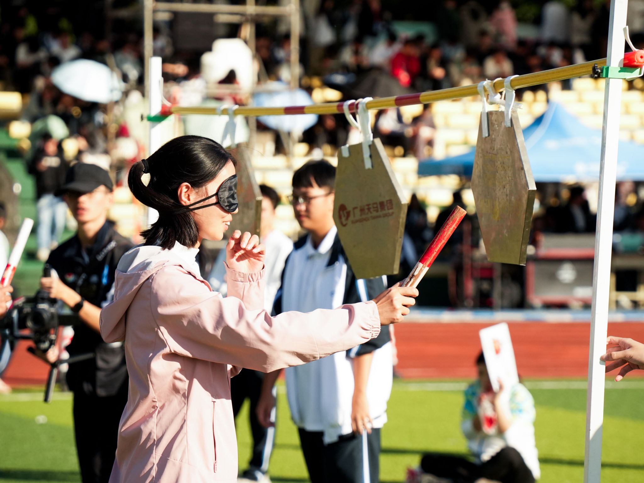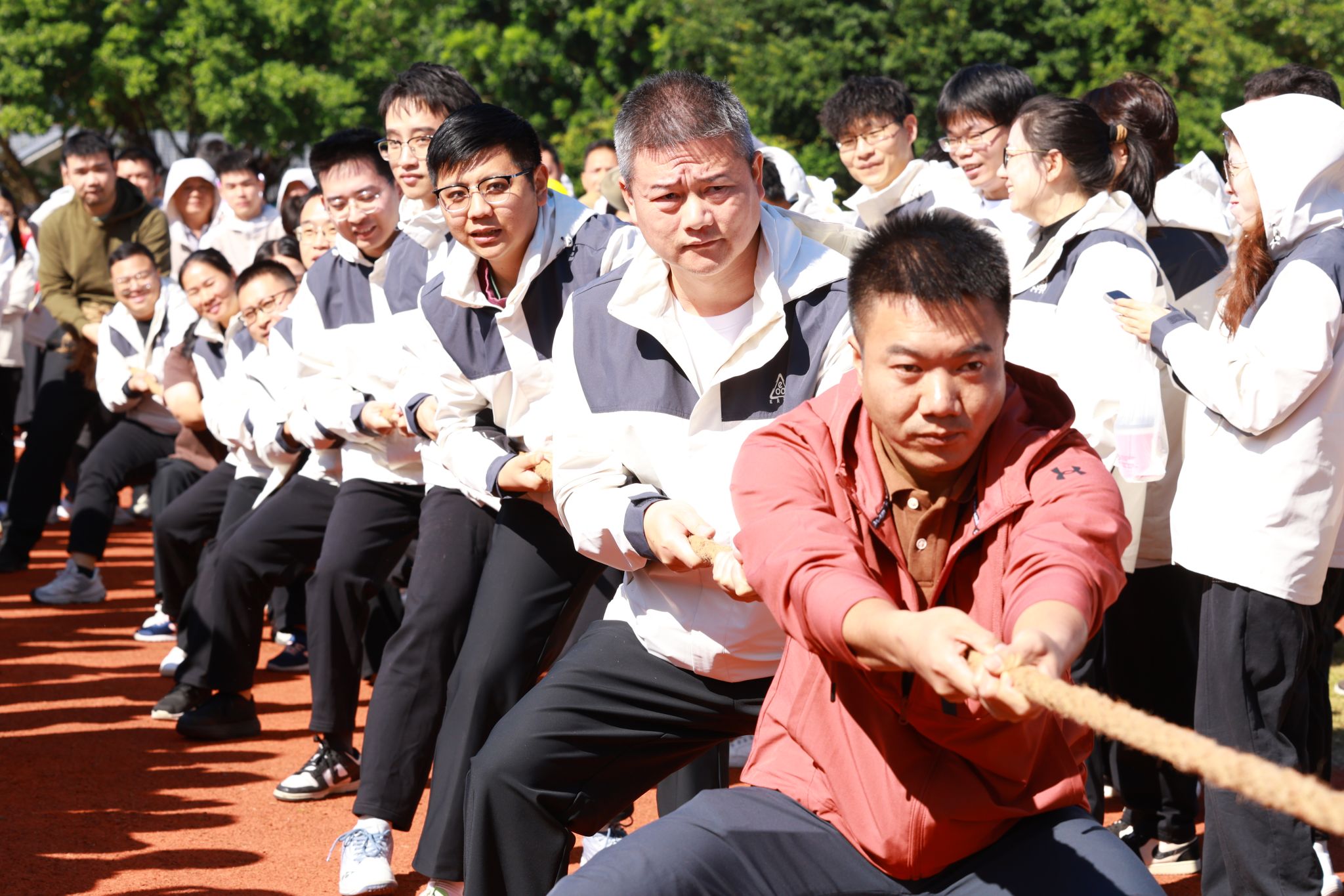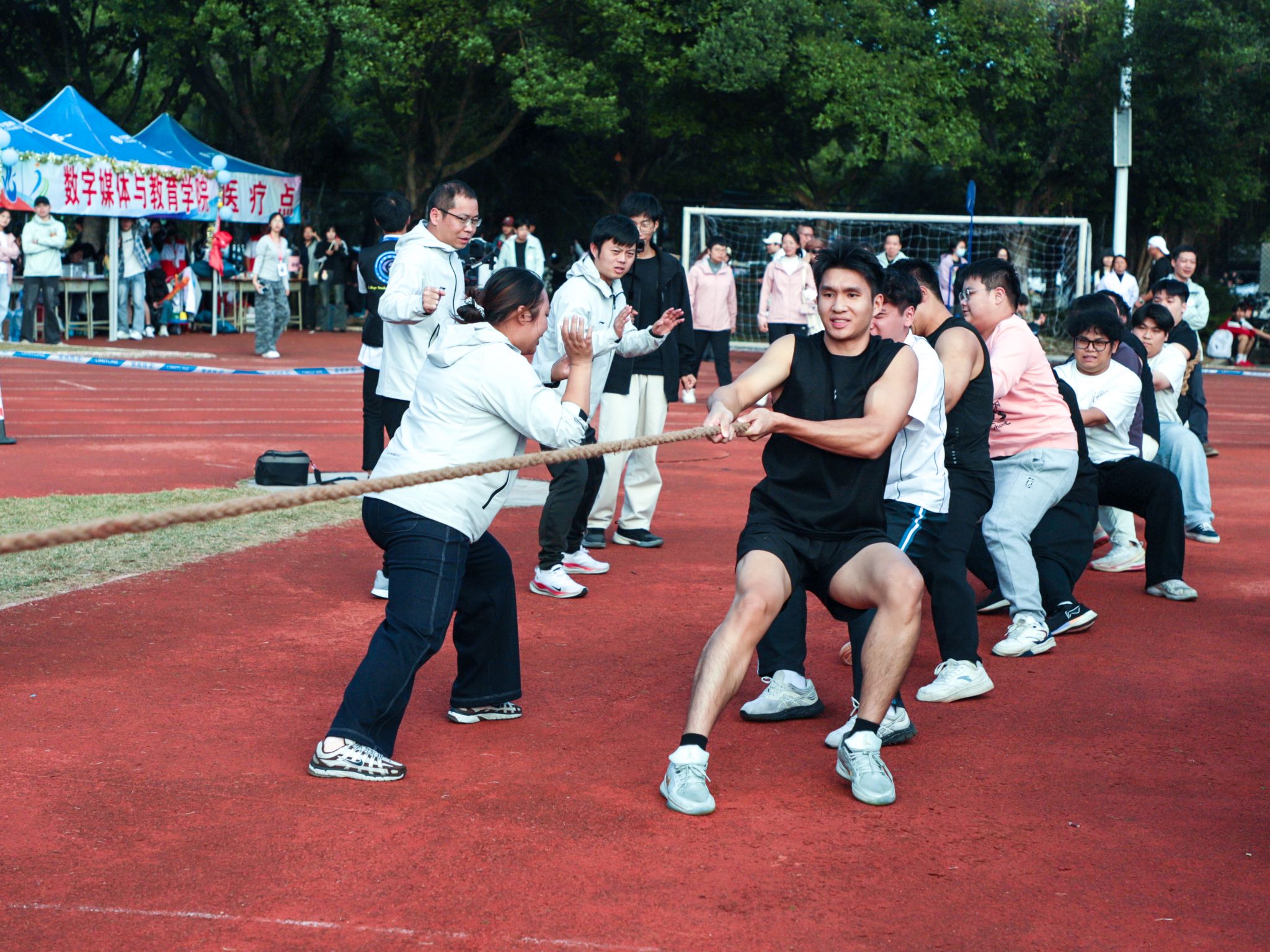 教职工组的比拼同样精彩纷呈。赛事设置充满趣味与温情,团体项目中,拔河的全力以赴、乒乓球接力赛的稳健迅捷、传呼啦圈的灵活默契、混合接力跑的团结协作,展现出浓厚的团队精神;个人项目中,捶丸的专注、呼啦圈的灵动、蒙眼敲锣的趣味、竞走的坚持、套圈的精准,每个项目都引来阵阵喝彩。老师们暂离讲台,在赛场上展现出活力四射、昂扬向上的别样风采,赢得了全场观众的掌声与欢呼。