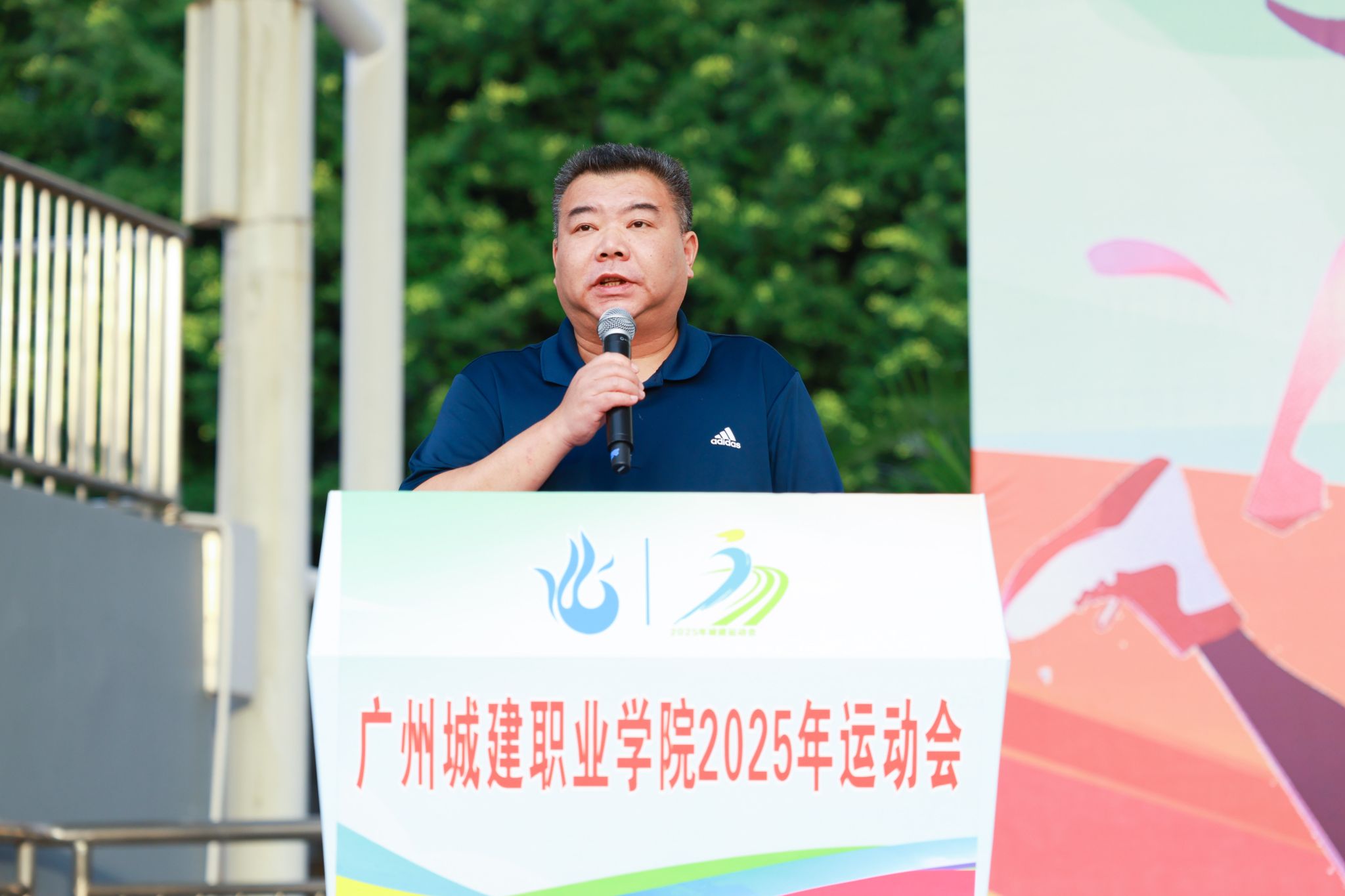 副校长、党委副书记、体育运动委员会主任张德宜致开幕辞。他代表学校体育运动委员会,向全体运动员、裁判员及工作人员致以最诚挚的问候,向为筹备本次运动会付出辛勤努力的师生团队表示衷心的感谢,并强调了体育在促进人的全面发展与构筑校园活力中的重要作用。他指出,学校高度重视体育工作,在过去的一年里,斩获多项国家级、省级赛事,在全校范围内点燃了运动热情。面向全体参与者,他提出了三点殷切期望:勉励运动员弘扬”更快、更高、更强——更团结”的奥林匹克精神;要求裁判员与工作人员秉持专业严谨的态度,确保赛事公正有序;呼吁同学们展现集体主义精神与文明观赛风尚,共同营造热烈和谐的育人氛围。最后,他勉励师生践行第十五届全运会“全民全运、同心同行”的理念,在赛场上书写青春华章,在奋斗中彰显城建风采,为学校高质量发展贡献青春力量!