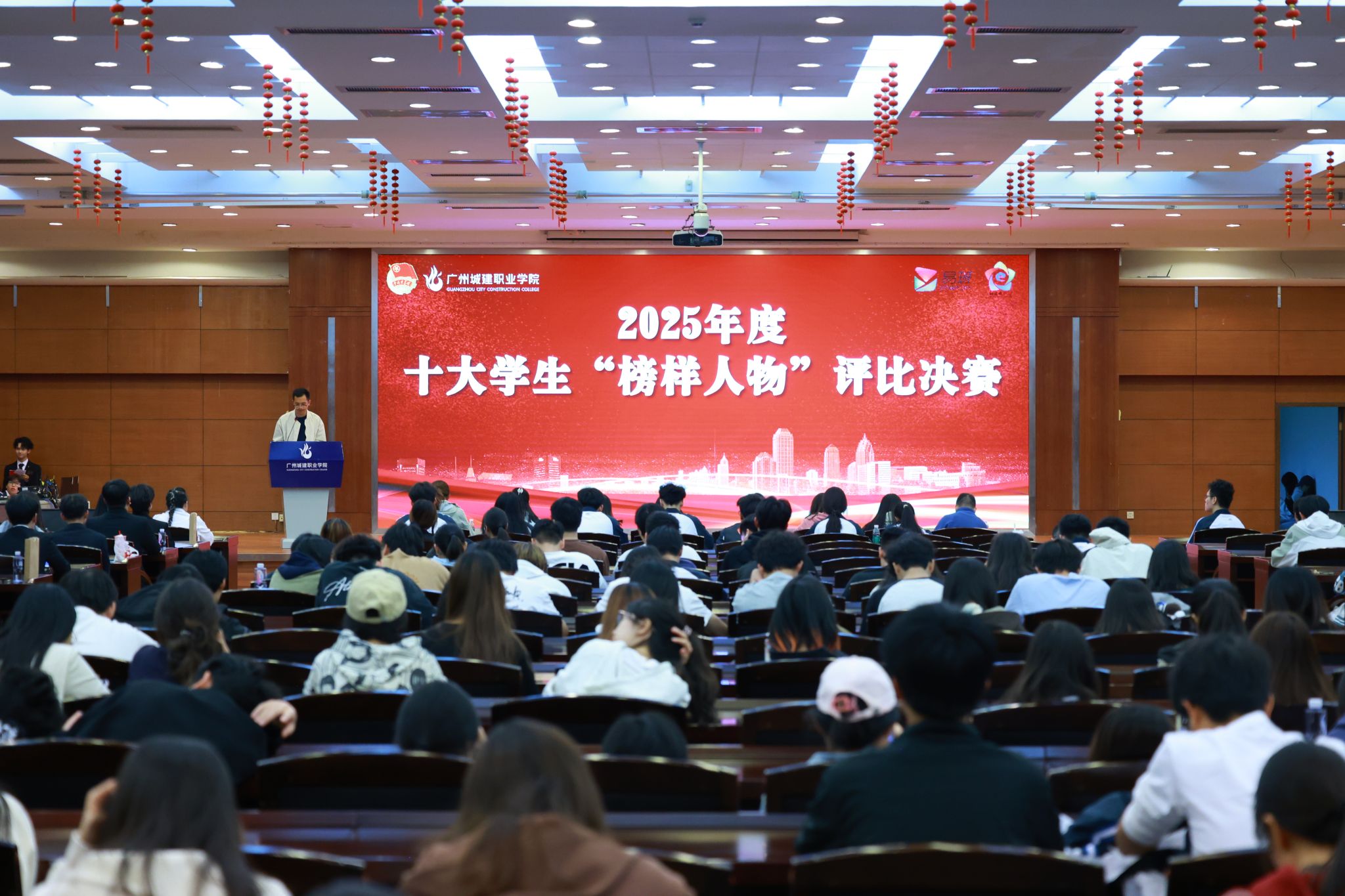 11月24日晚,我校第二十三届校园文体艺术季之2025年度十大学生“榜样人物”评选决赛在广州校区人文艺术楼四楼报告厅举行。团委书记甄伟文、各二级学院辅导员代表及学生代表共同出席本次活动。
