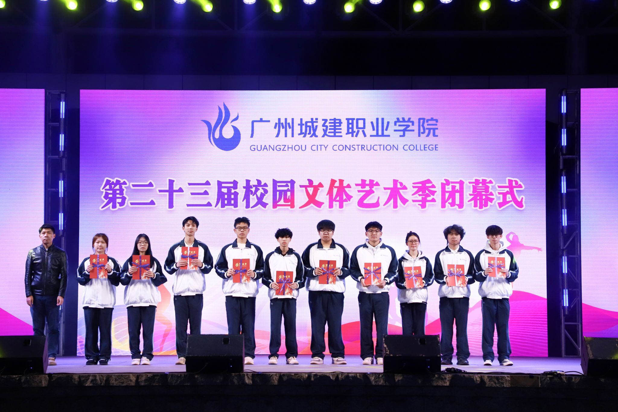 11月27日晚,我校广州校区第二十五届校园十大歌手决赛暨第二十三届校园文体艺术季闭幕式在田径场举行。校长助理、党委委员张双,团委书记兼党委学生工作部副部长甄伟文,学生处副处长、党委学生工作部副部长谭宇欣,各二级学院党委书记、副书记,副院长等学工负责人、团委书记及师生代表共同出席本次活动。