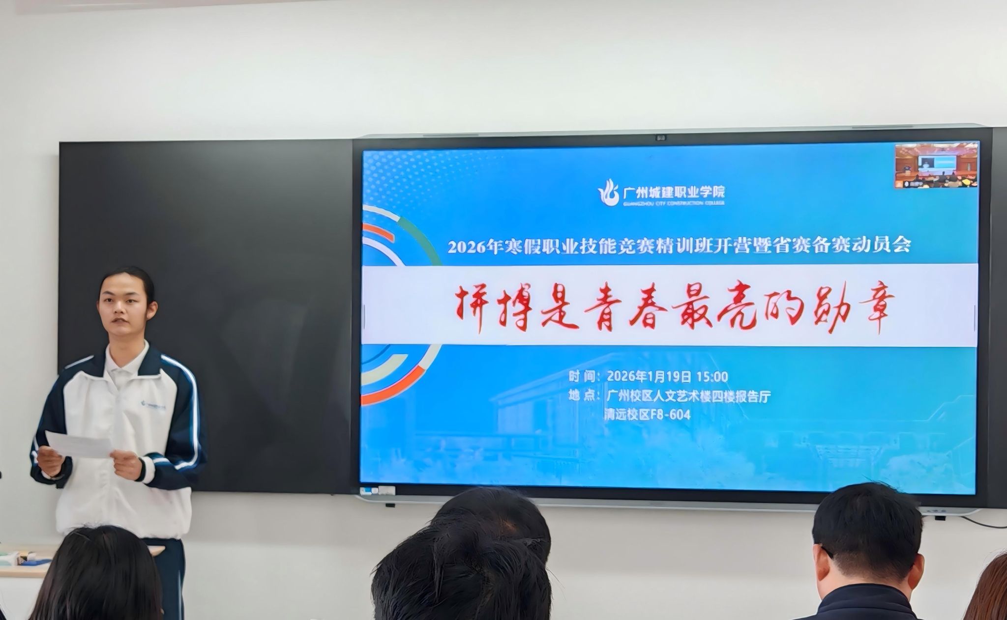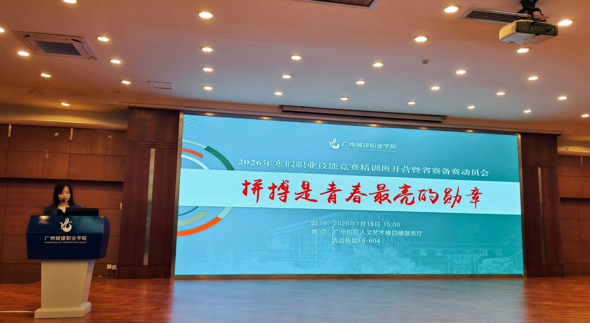 1月19日下午,学校以“拼搏是青春最亮的勋章”为主题,在广州与清远两校区同步召开2025-2026学年省职业院校技能大赛备赛动员会,开启2026年职业技能精训班集训征程。副校长鄢维峰,教务处、现代教育技术中心、学生处等有关部门负责人,各二级学院分管领导及集训师生500余人参加会议,教务处负责人高华主持会议。