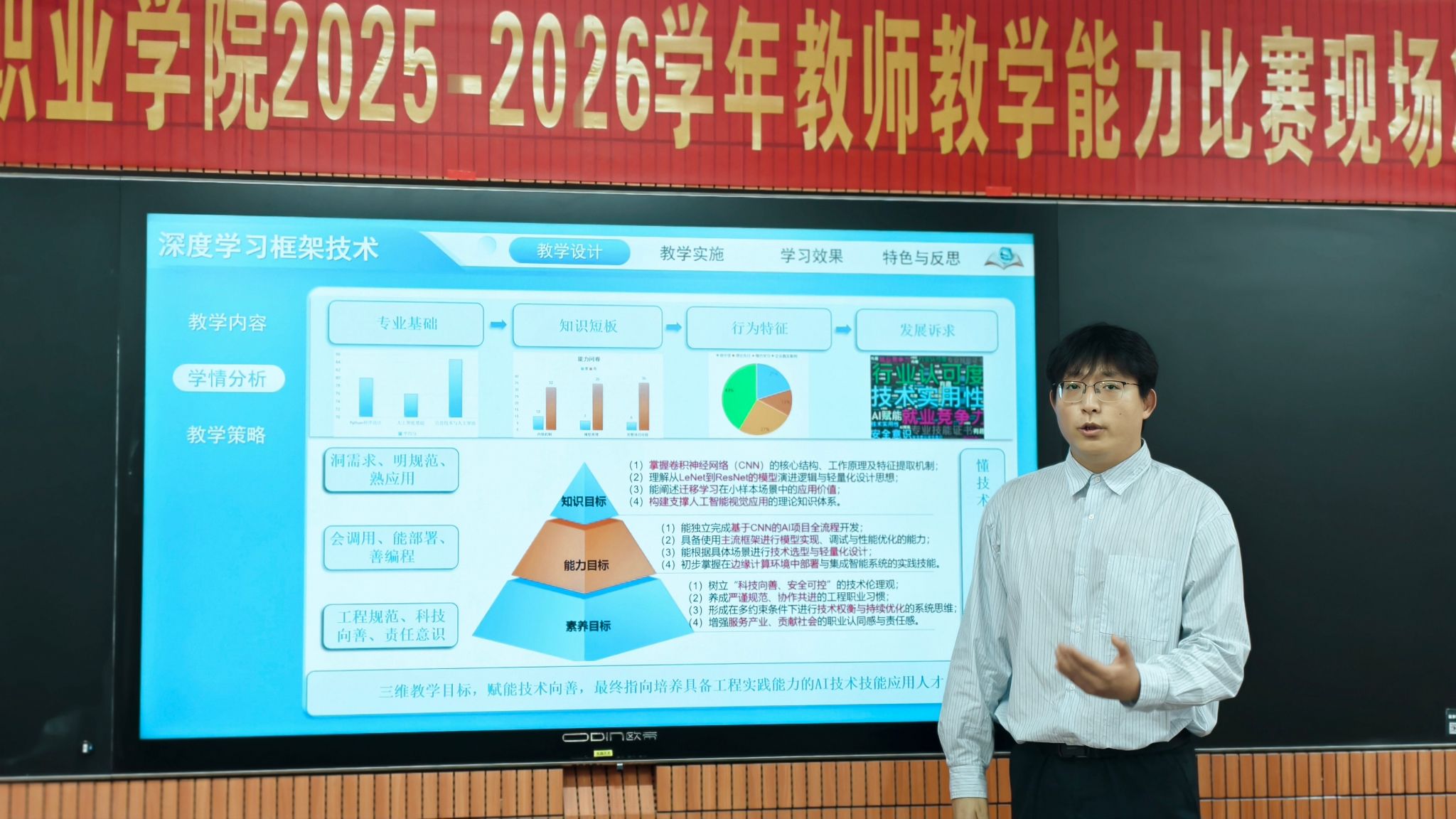 本次大赛以“以赛砺教、聚力成长”为主题,落实“以老带新、协同共进”的教学团队建设理念,聚焦真实教学场景,强调“以学生为中心”的课堂变革实践,通过校、院两级联动机制,快速提升教师团队语言表达、课堂驾驭等核心教学技能,推动职业教育理念与教学方法的迭代。