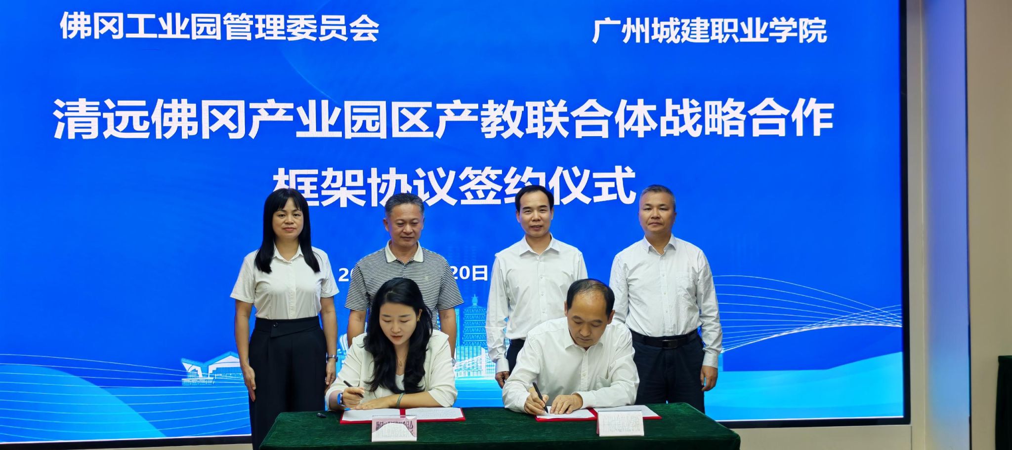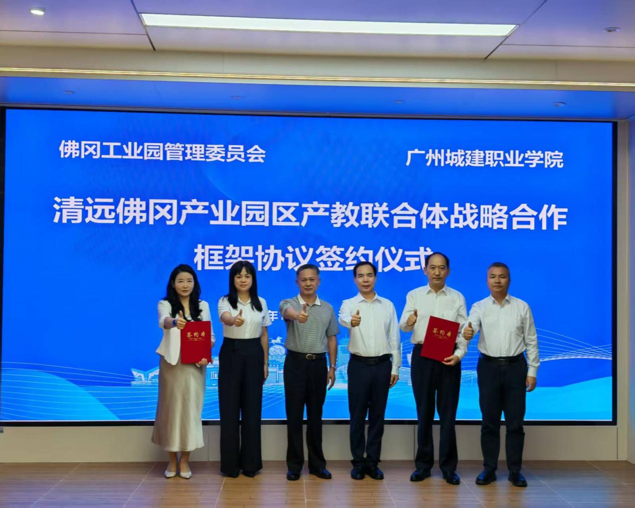 10月20日,我校与佛冈工业园管理委员会成功签署清远佛冈产业园区产教联合体战略合作框架协议。佛冈县副县长黄泽川、县人民政府办公室主任梁沛英、佛冈工业园管委会主任钟萍,我校校长李国年,副校长杨清国,副校长、党委副书记张德宜出席仪式,双方相关部门负责人共同见证这一重要时刻。仪式由梁沛英主持。