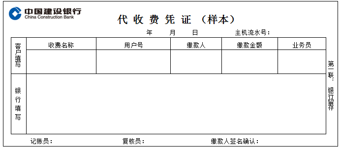 (一)中国建设银行代收费凭证的使用和填写方法