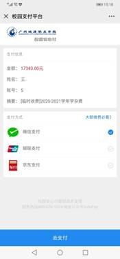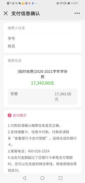 5、确认支付信息无误后,选择支付方式,完成后续缴费。(为保证缴费顺利,请确保关联的银行卡余额充足。)