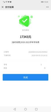 按照提示完成缴费操作后返回“支付成功”信息,返回缴费列表查询已缴费信息。