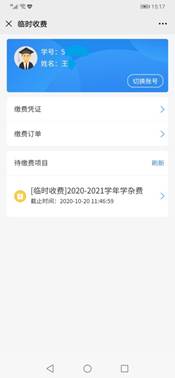 3、点击“临时收费”,输入缴费编号、学生本人姓名。