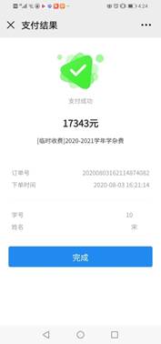5.2.2、完成缴费后返回“支付结果”信息,可返回缴费列表查询已缴费信息。