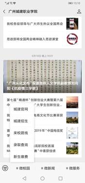 1、关注“广州城建职业学院”微信公众号,可直接扫描以下二维码,或通过微信搜索。