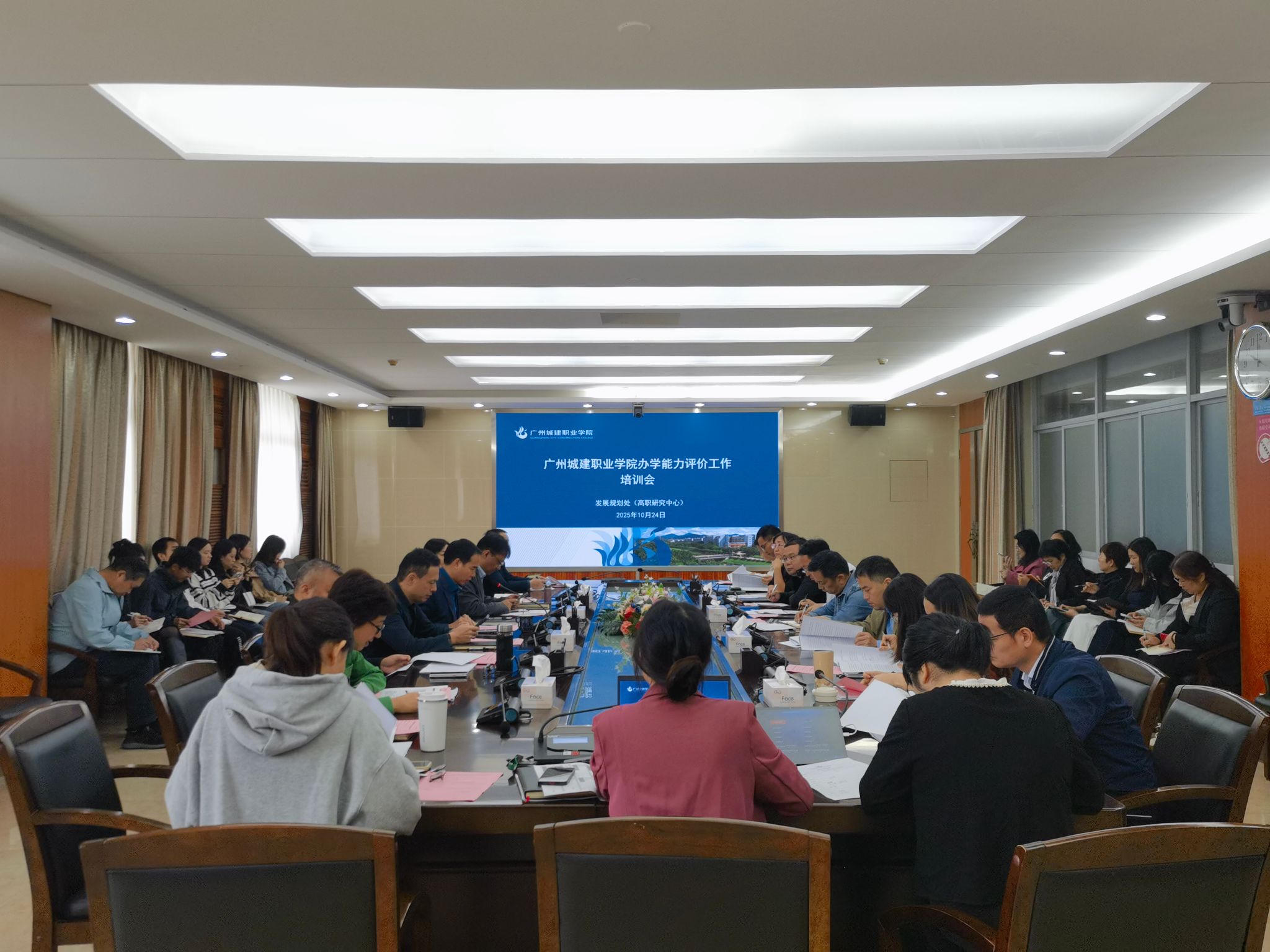 10月24日,学校在广州校区行政楼501会议室召开办学能力评价工作培训会议。校长李国年,副校长、副书记张德宜,副校长鄢维峰,党委副书记、纪委书记张江南,各相关职能部门主要负责人及工作人员参会。会议由李国年主持。