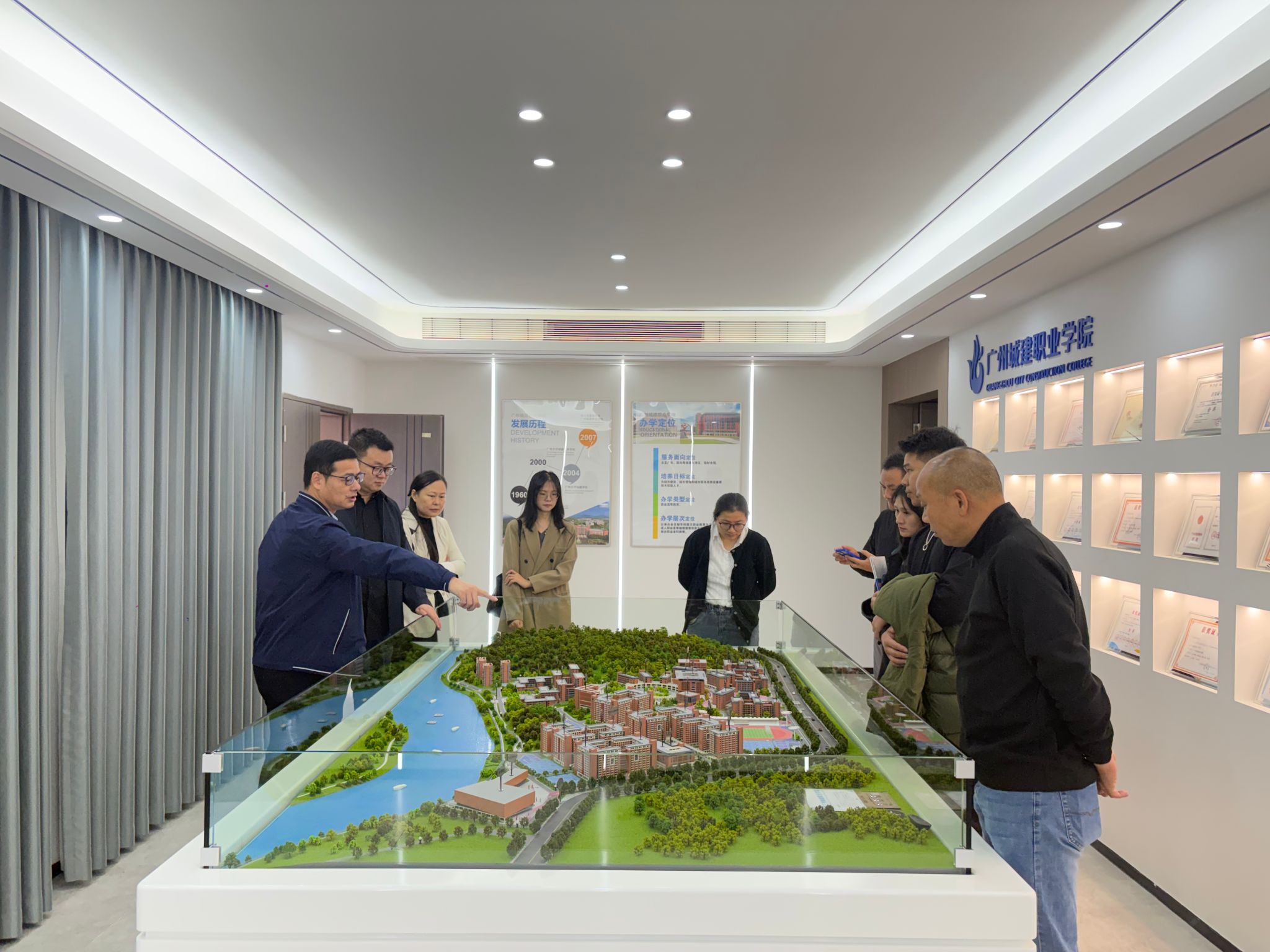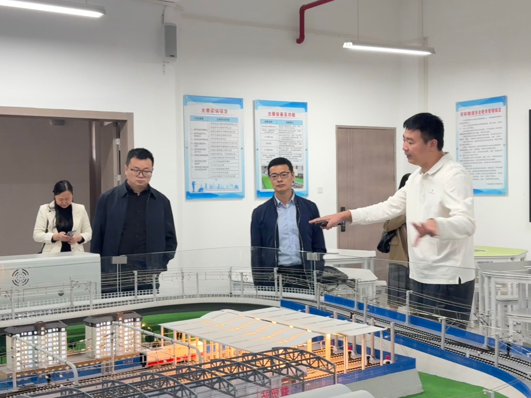活动伊始,潘福中处长带领与会人员参观学校清远校区规划沙盘模型,详细介绍校园整体规划、功能布局及发展建设成果。随后,实地走访轨道交通学院与医药卫生学院的实训室,现场观摩相关专业的实践教学环境和技能培训实操场景。