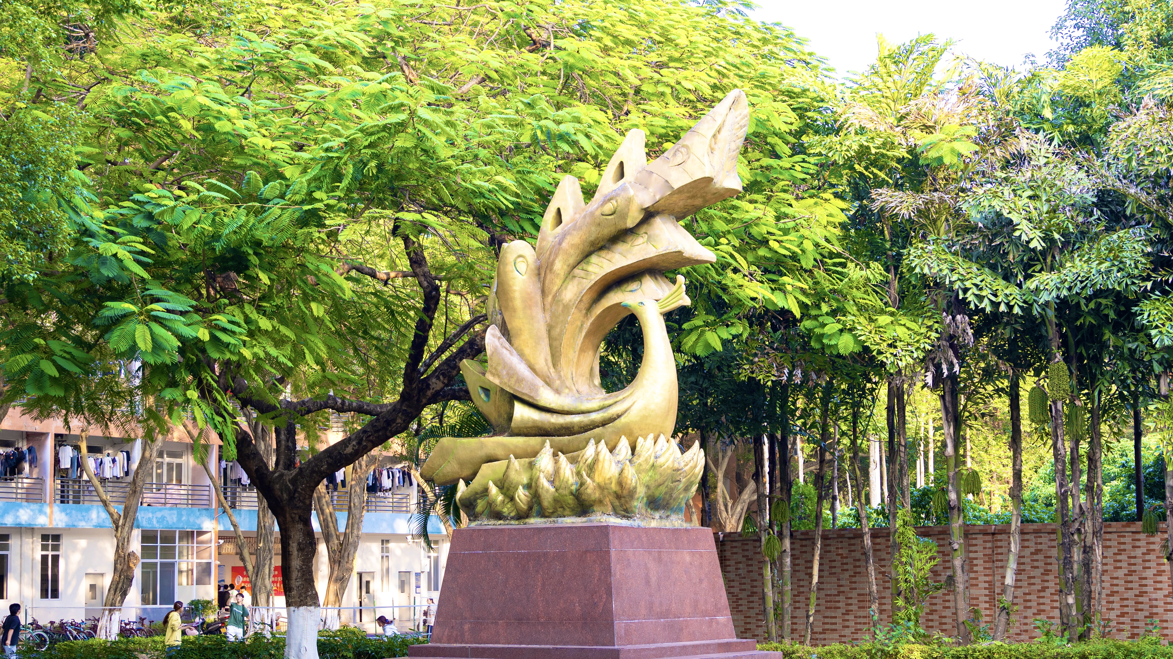 凤凰河是贯穿校园的一条天然河流,因源头位于凤凰山上而得名。经过扩宽修整,打造成学校的又一美景。学校校徽设计凤凰创意即来源于此。
